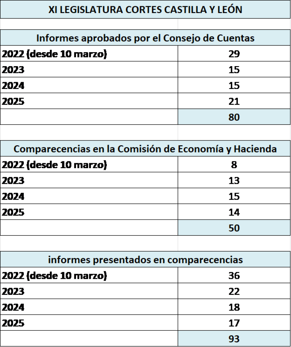 Una vez culminada la undécima legislatura del Parlamento autonómico, el Consejo de Cuentas también ha hecho balance de su actividad en este periodo, durante el cual el presidente Mario Amilivia ha realizado un total de 50 comparecencias en la Comisión de Economía y Hacienda del Parlamento autonómico para presentar 93 informes y 5 planes anuales de fiscalización.