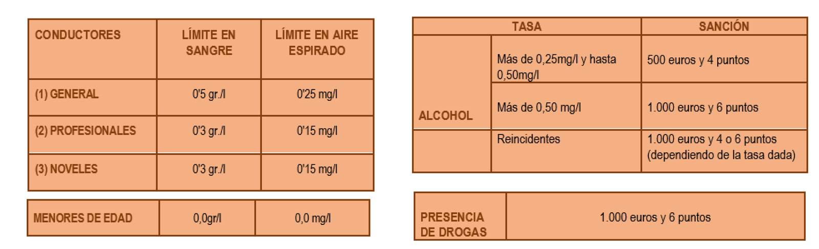 La bajada de la tasa de alcohol en aire espirado de 0,25 a 0,10mg/l realizada en Noruega y Suecia en 1990 y acompañada de otras medidas complementarias, supuso una reducción del 12 por ciento en los siniestros con víctimas, una disminución de un 8 por ciento de los siniestros mortales y además se rebajaron un 16 por ciento los casos de personas que conducían bajo los efectos del alcohol.