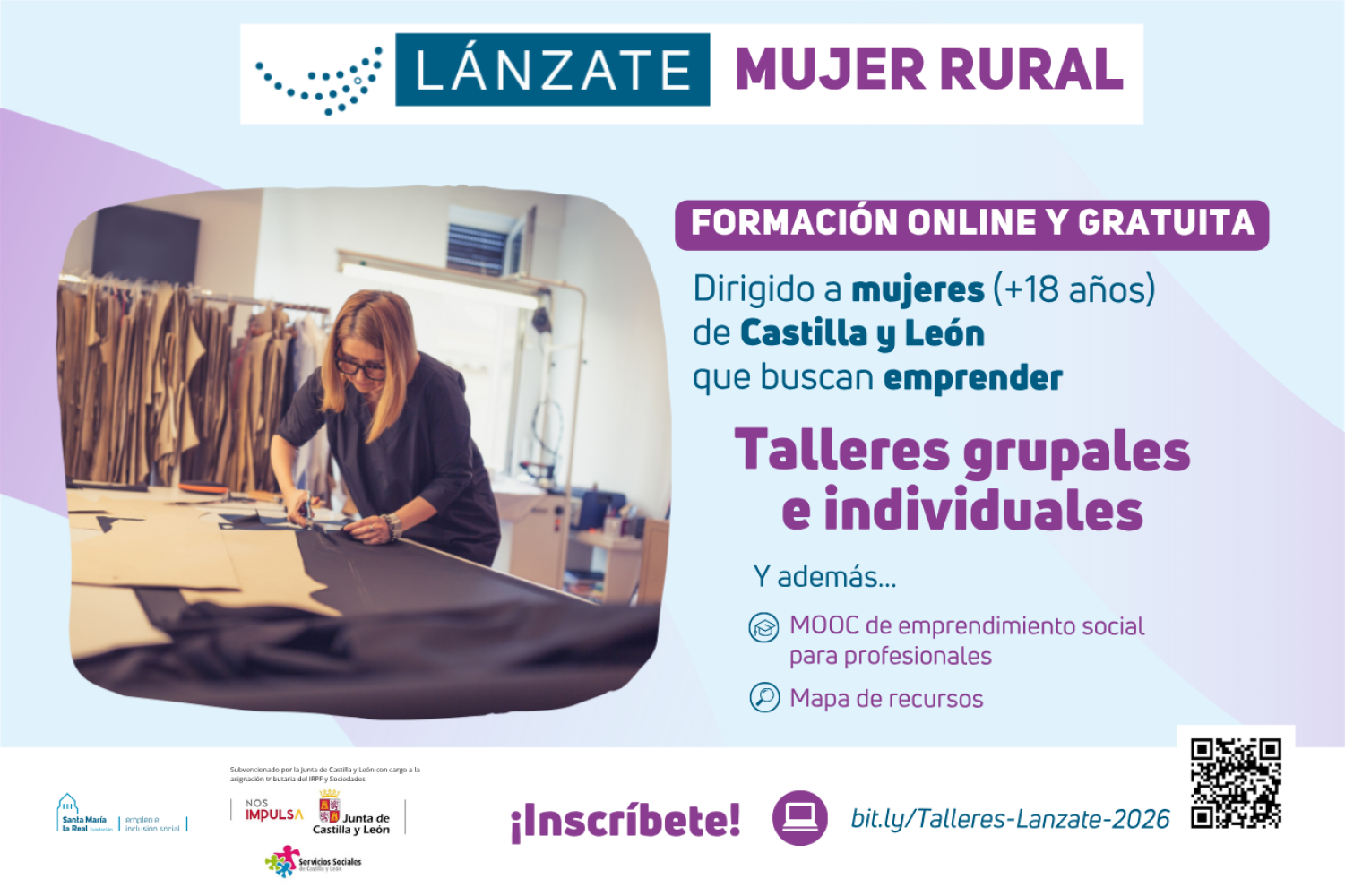 Las participantes reciben orientación y descubren las herramientas más actuales para transformar su idea en un negocio inclusivo, con impacto social y también medioambiental. Ya está abierta la inscripción en este enlace: https://bit.ly/Talleres-Lanzate-2026