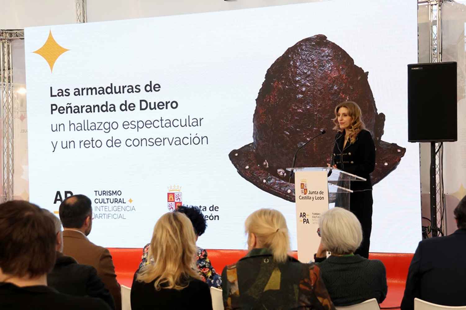 La viceconsejera de Acción Cultural, Mar Sancho, ha presentado hoy el hallazgo de un importante conjunto de armaduras del siglo XVI encontrado durante los trabajos arqueológicos en el Palacio de Avellaneda de Peñaranda de Duero, propiedad de la Junta de Castilla y León, para su adecuación como hotel termal, por parte de la empresa Hotel Peñaranda de Duero.