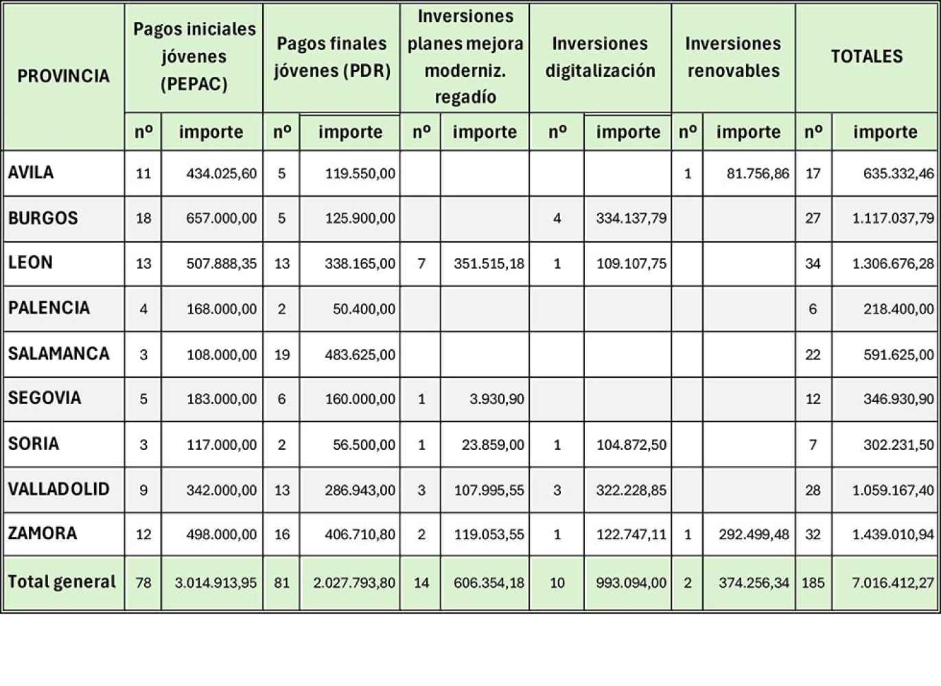 La Junta de Castilla y León ha abonado durante esta semana más de 7 millones de euros a 185 agricultores y ganaderos de la Comunidad en concepto de ayudas a la incorporación de jóvenes y planes de mejora.