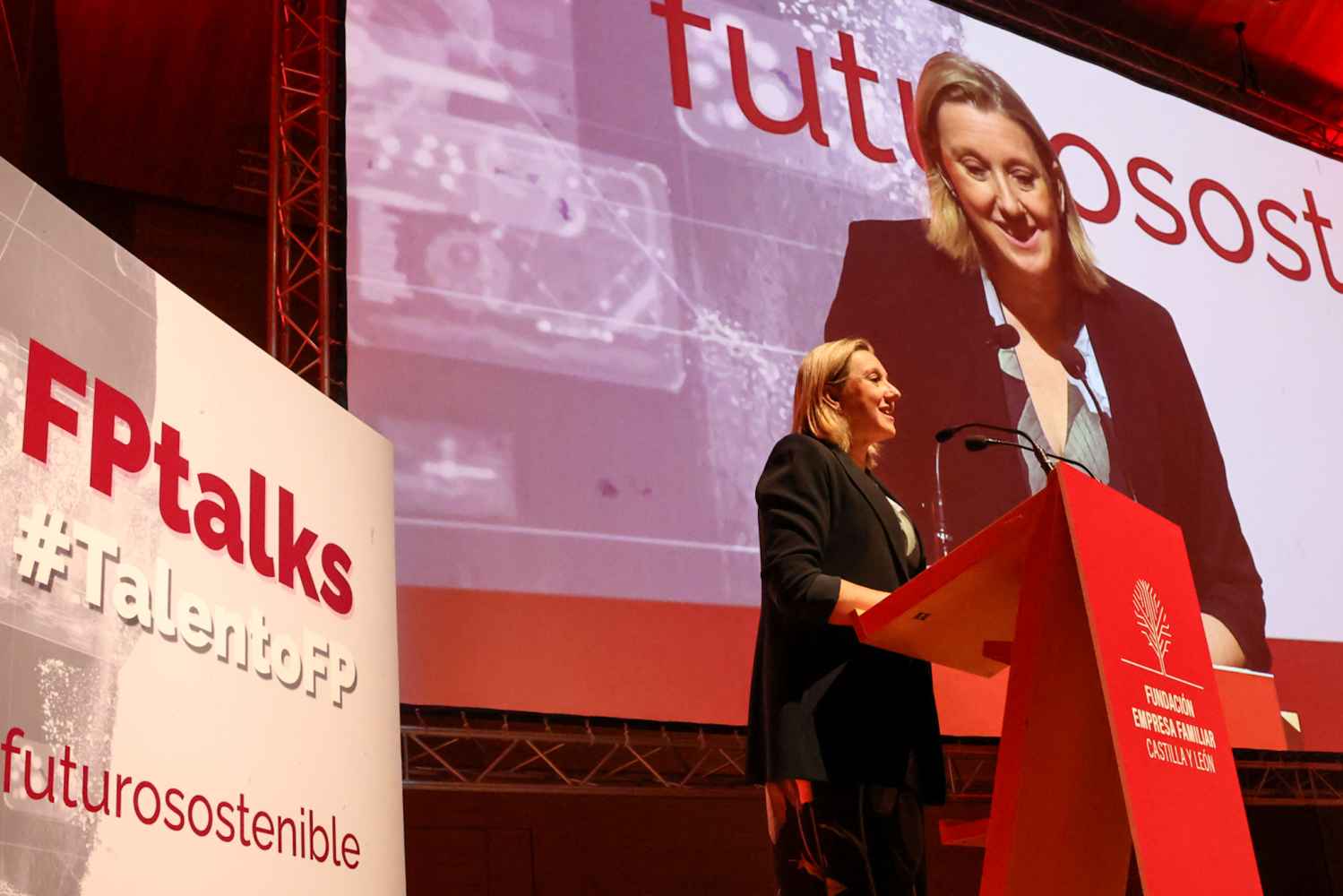 La vicepresidenta de la Junta y consejera de Familia e Igualdad de Oportunidades, Isabel Blanco, ha participado hoy en la quinta edición del foro ‘FP Talks’ organizado por la Fundación Empresa Familiar Castilla y León, que se ha celebrado en el Centro Cultural Miguel Delibes de Valladolid bajo el lema ‘Talento FP: Futuro sostenible’.