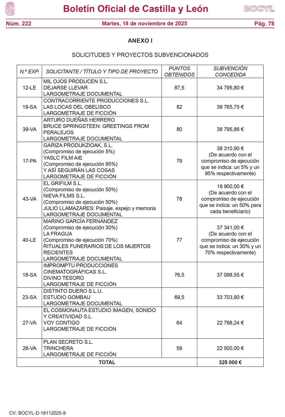 El Boletín Oficial de Castilla y León ha publicado hoy la orden por la que se conceden subvenciones para la preproducción, producción y distribución de largometrajes, documentales y de ficción, así como pilotos de series de animación y televisión 2025.
