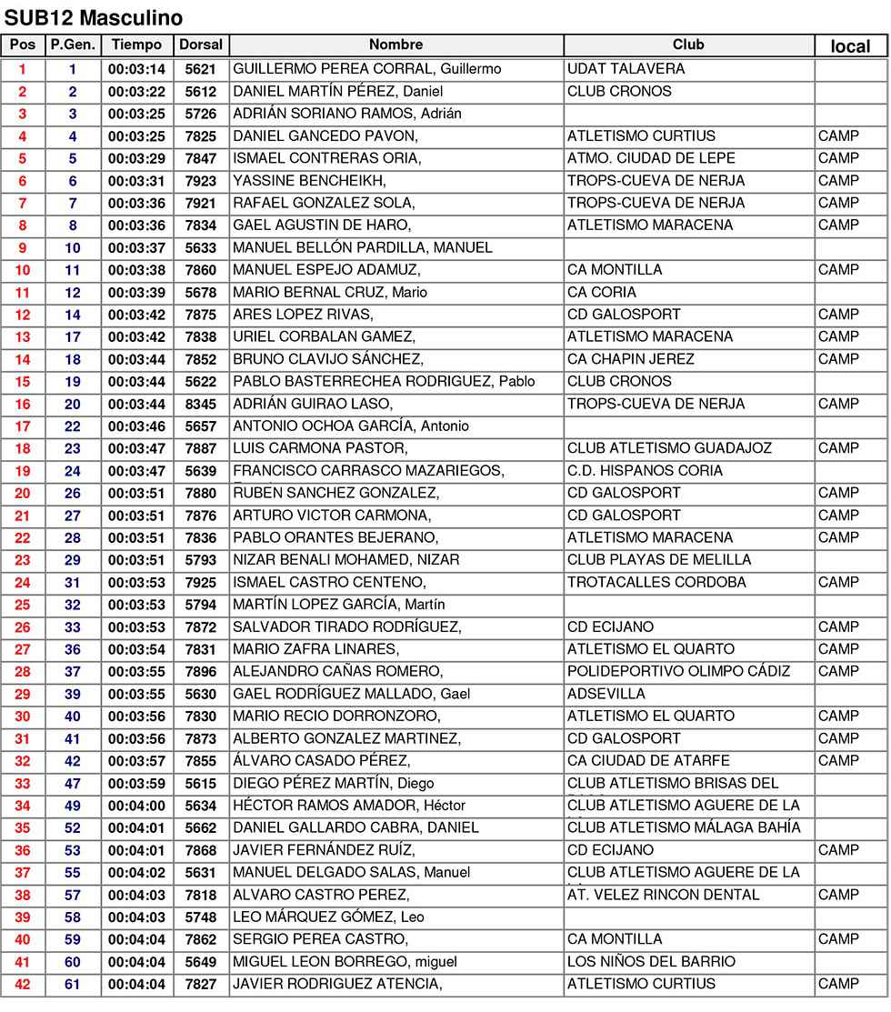 El ganador de la distancia ha sido Guillermo Perea, de UDAT Talavera, con un tiempo de 3:14. La segunda plaza ha sido para Daniel Martín, del Club Cronos, con 3:22.