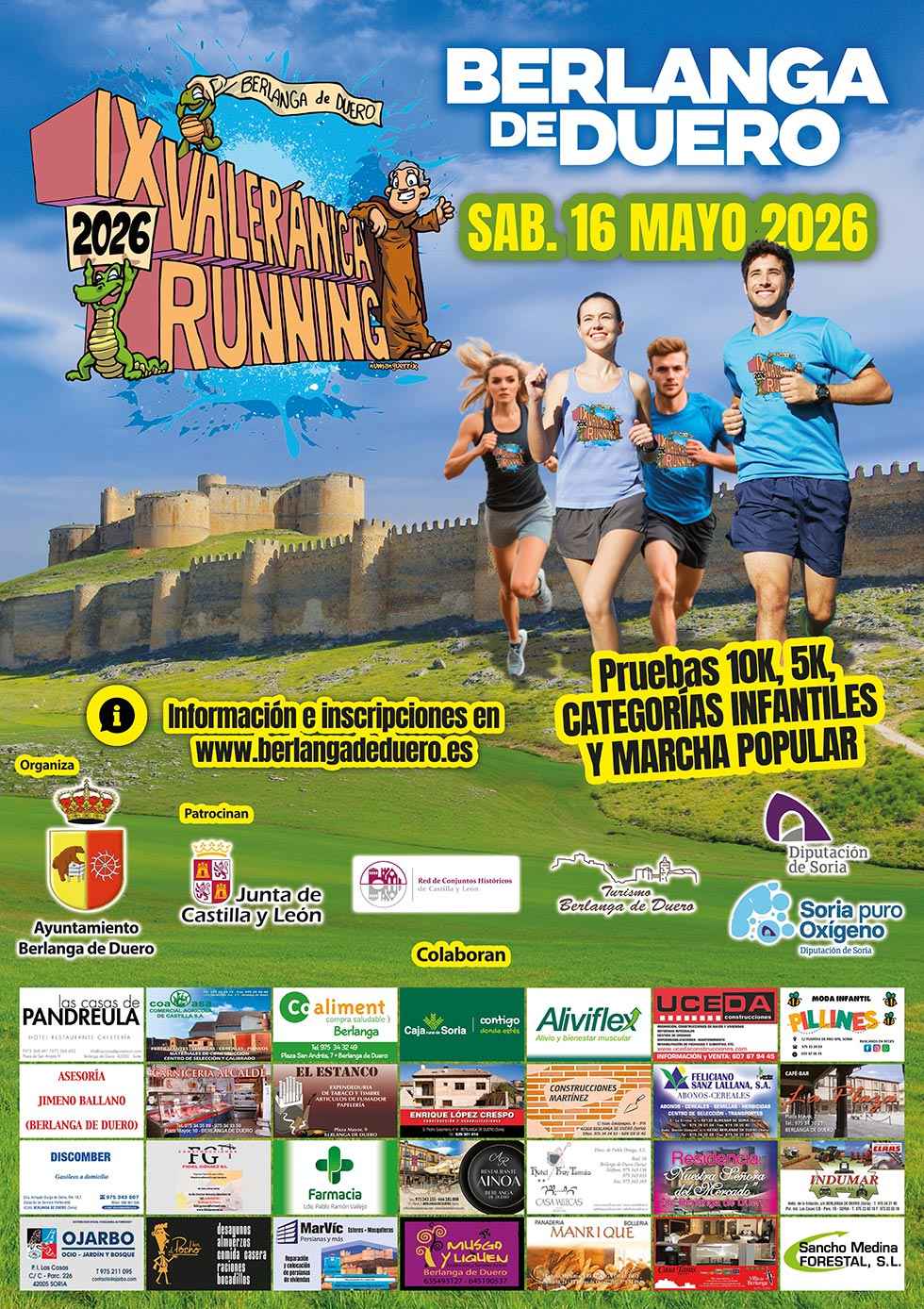 El Ayuntamiento de Berlanga de Duero organizará el próximo 16 de mayo la novena edición de la “Valeránica Running”, una prueba inscrita en el calendario autonómico de la Federación de Atletismo de Castilla y León.