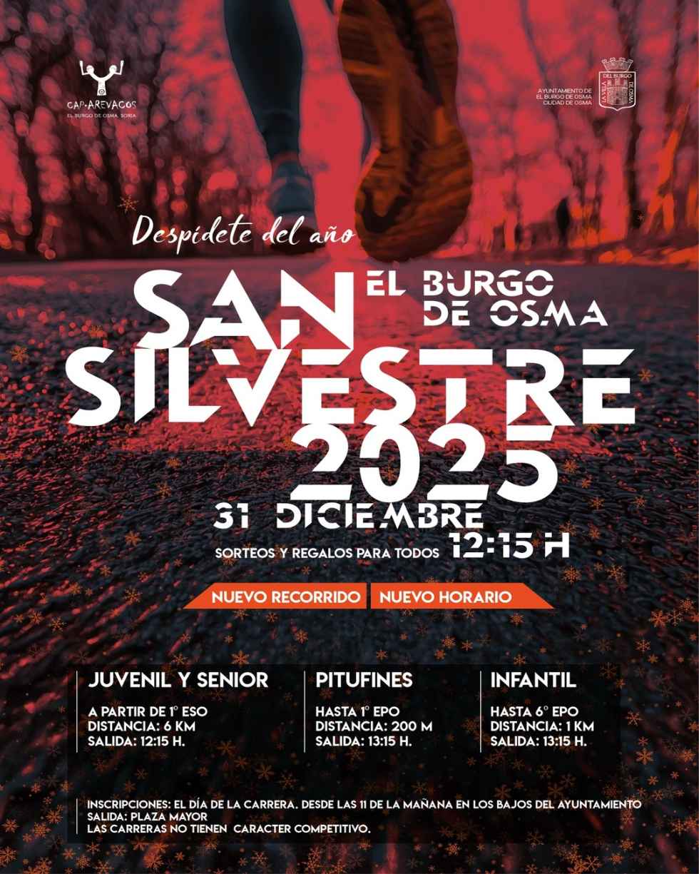 El Burgo de Osma también despide el año a la carrera, con una San Silvestre que de disputa en la mañana del 31 de diciembre, a partir de las 12.15 horas, con tres categorías; juvenil y senior, pitufines e infantil.