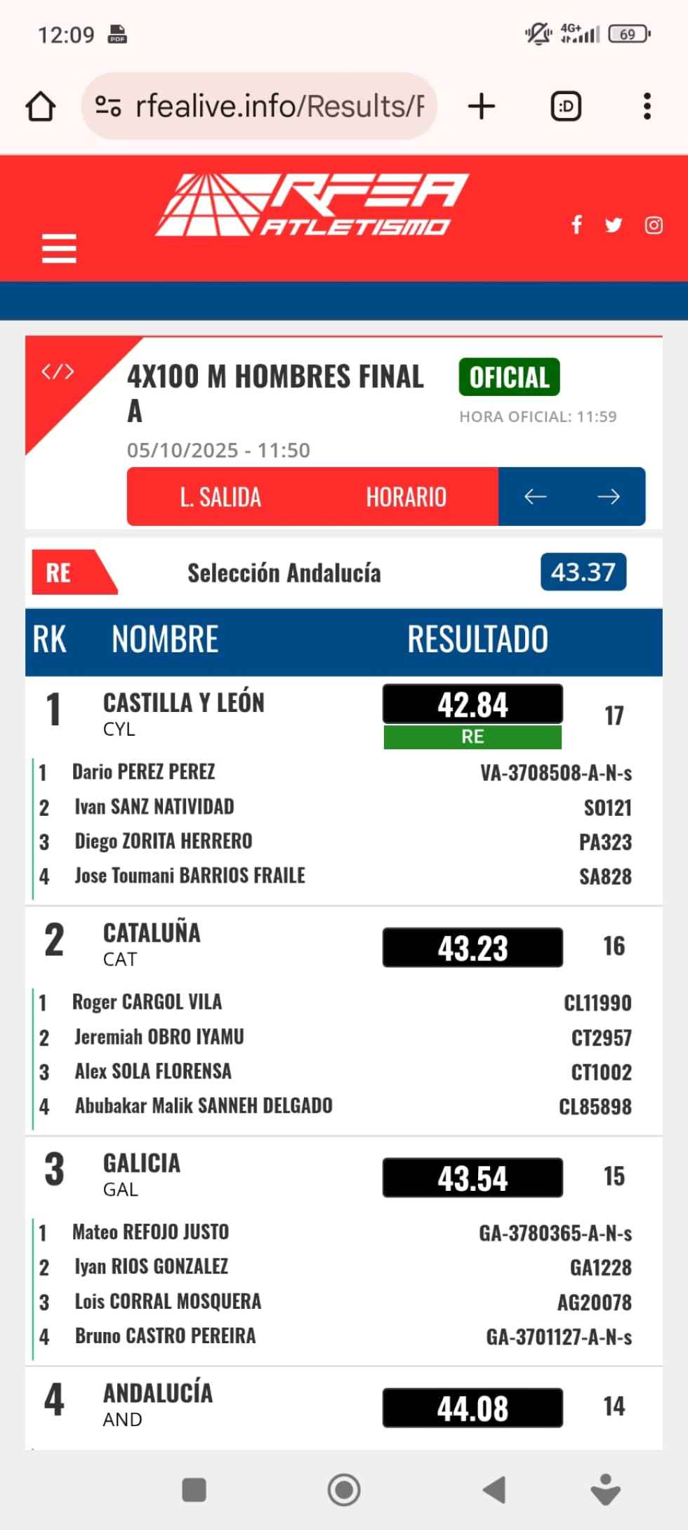 En el relevo 4x100  del que ha formado parte Iván Sanz Natividad, se han proclamado campeones de España de federaciones con récord de España con una marca de 42;84