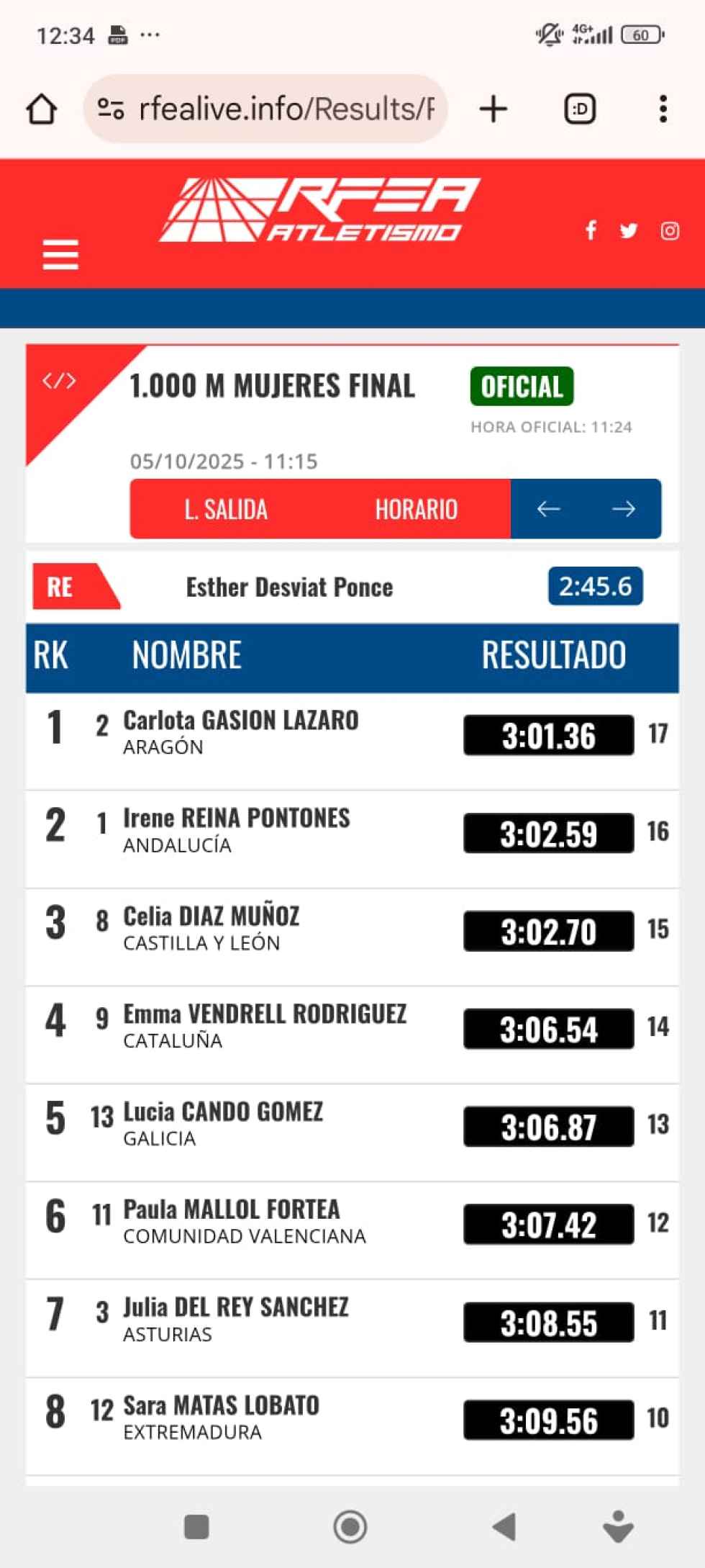 En 1.000 ml, Celia Díaz, ha sido segunda con una marca 3:02;70
