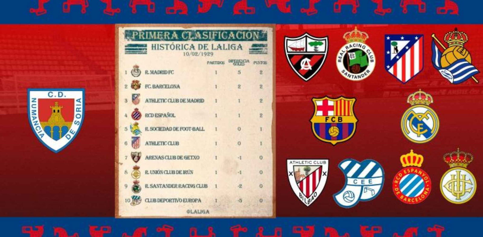 El C. D. Numancia se enfrentará al Arenas Club en la primera eliminatoria de la Copa del Rey 2025-26. Este partido será el partido número 100 del club numantino en el torneo del KO y, además, servirá para completar un hito que, hasta hoy, se había ido posponiendo por cuestiones deportivas y de azar en los sorteos, y que no es otro que el hecho de conseguir enfrentarse a los diez equipos fundadores del primer campeonato nacional de liga de Primera división.