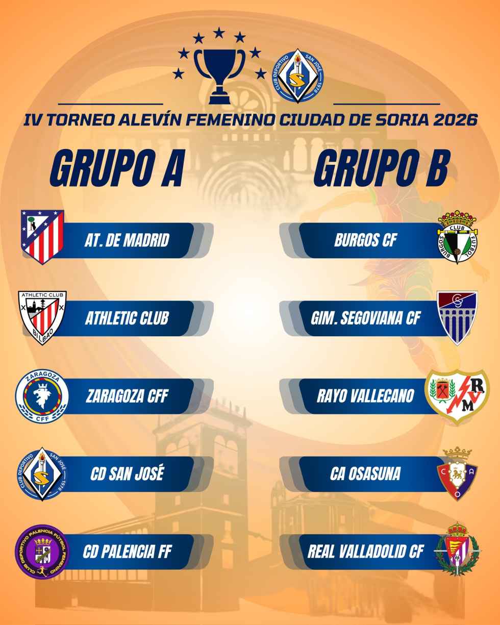 Entre los equipos que disputarán la competición están el C.D San José de Soria, Club Atlético de Madrid, Athletic Club de Bilbao, Zaragoza C.F.F, C.A. Osasuna , Rayo Vallecano de Madrid, Real Valladolid C.F, Real Burgos C.F, Gimnástica Segoviana C.F y C.D Palencia.