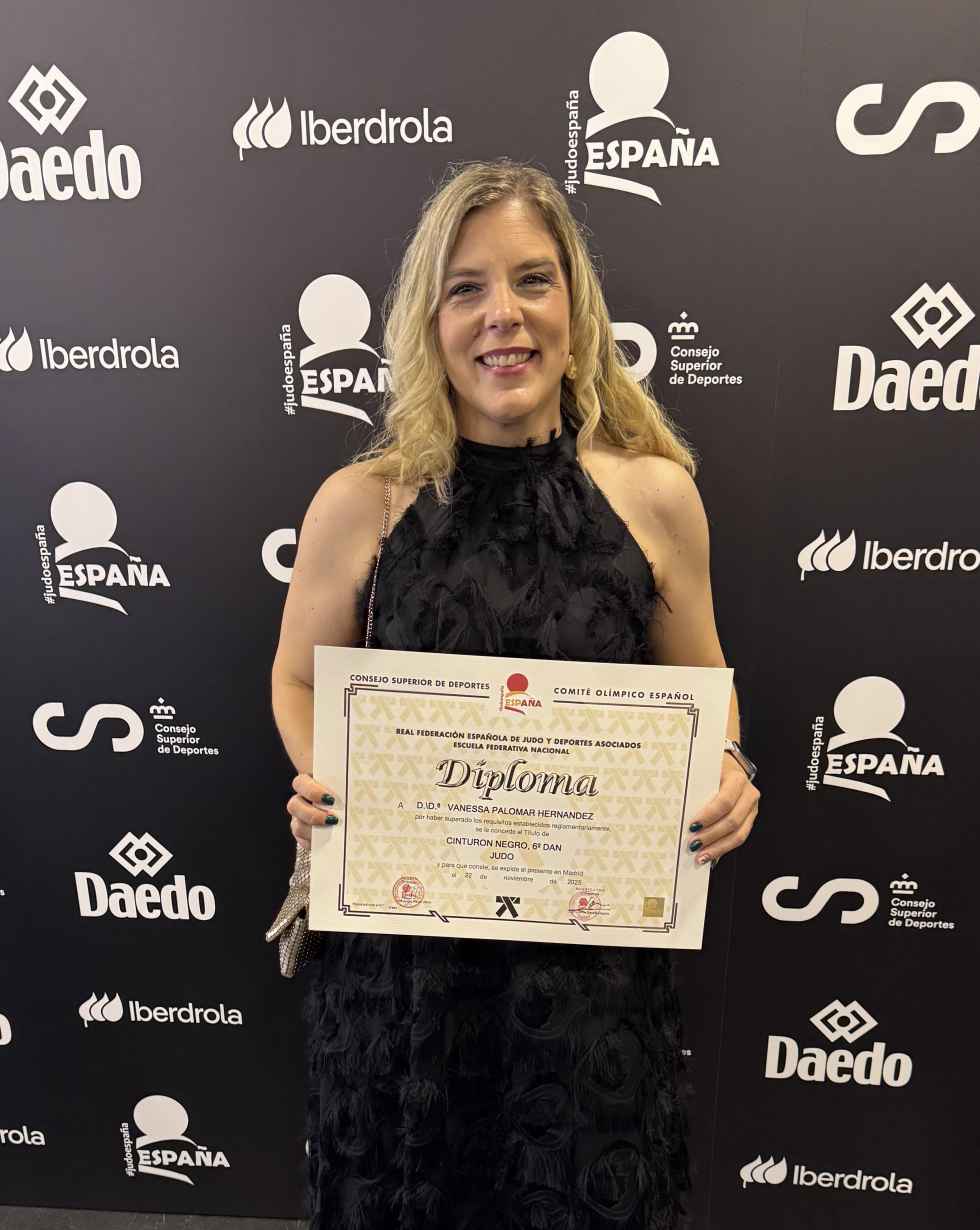 Vanessa Palomar Hernández, del Judo Club San José, tras haber superado los requisitos establecidos por la Real Federación Española de Judo y DD. AA. ha recibido el diploma que acredita como Cinturón negro 6º Dan de Judo.