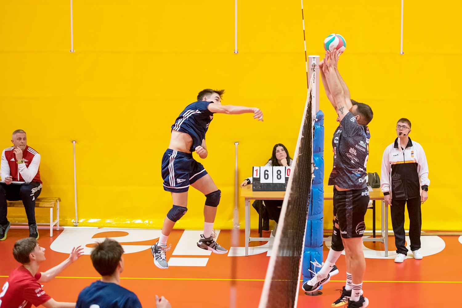 La primera ventaja relevante del Moreno Sáez Sporting en el primer set (13-18) llegó gracias a un remate de Alejandro Vinuesa por zona 6. Los asturianos, tras firmar un saque directo, se aproximaron hasta el 19-21, pero los sorianos no tardarían en poner el 0-1 en el marcador. Las rachas de uno y otro equipo marcaron el devenir de la segunda manga.