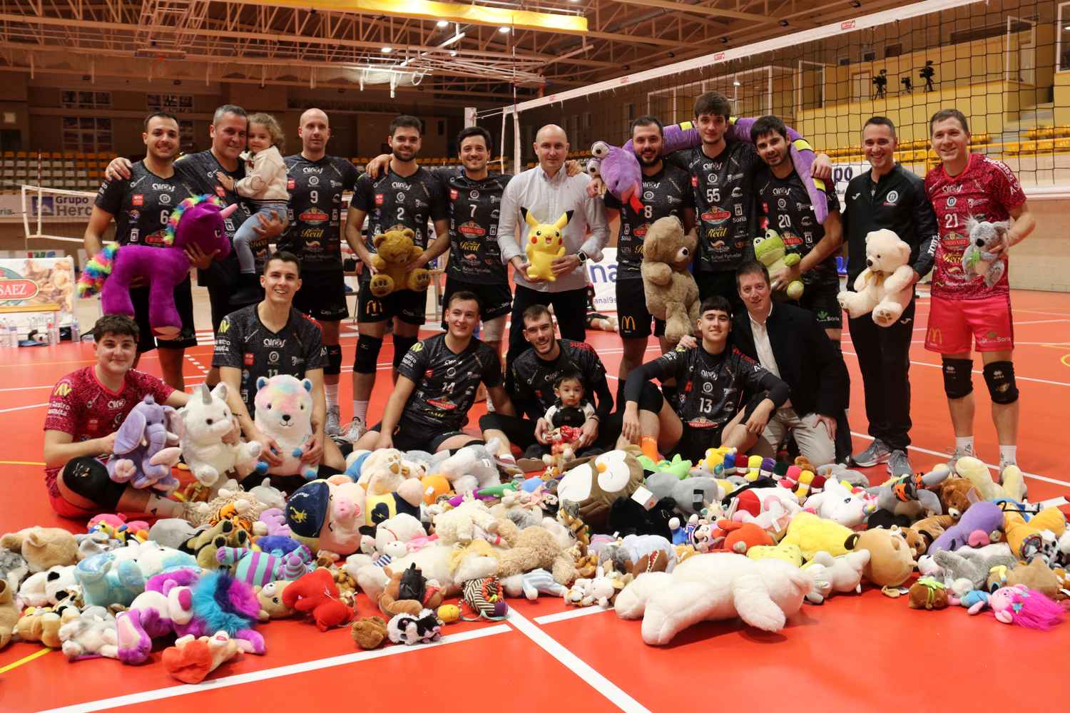 La fiel afición del primer equipo masculino del Sporting Santo Domingo arrojó a la cancha más de medio millar de peluches, que serán repartidos esta Navidad por Cáritas Diocesana de Osma-Soria entre los niños más necesitados.