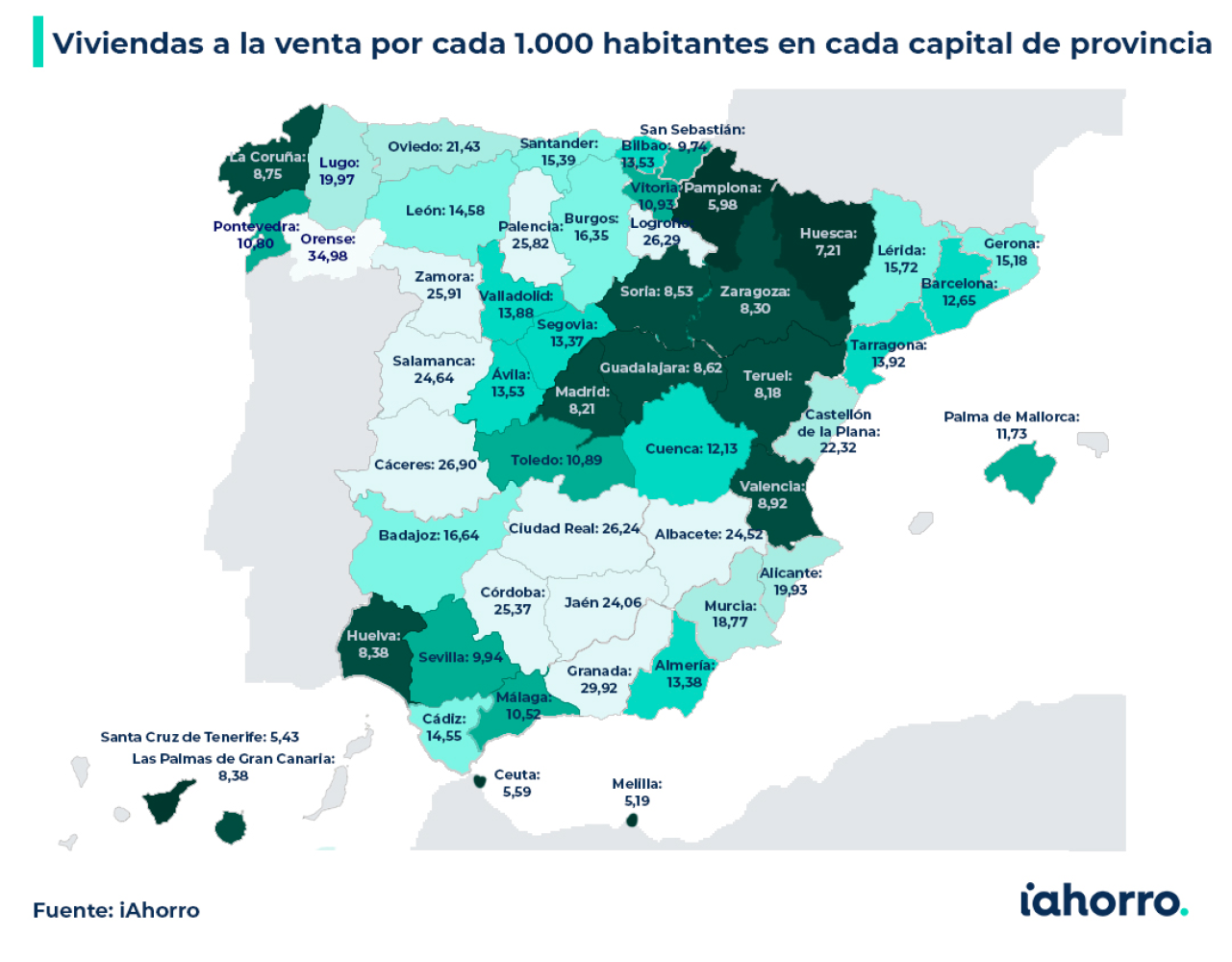 En el lado opuesto del ranking se sitúan varias ciudades, entre ellas algunas capitales de provincia del interior peninsular y otros mercados secundarios que presentan los niveles de tensión inmobiliaria más reducidos del país.