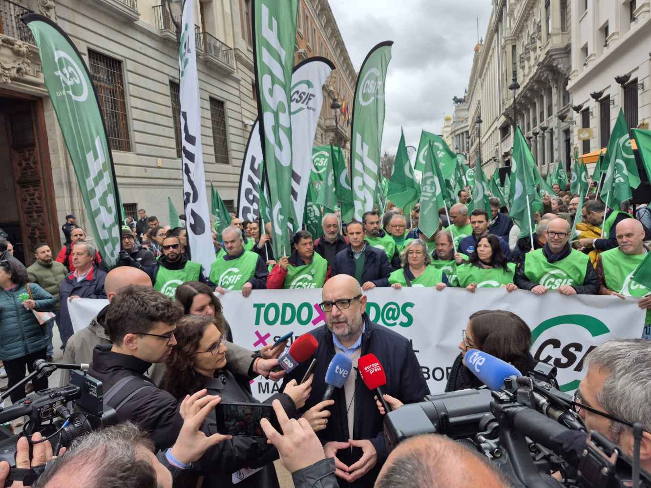 CSIF iniciará la semana que viene, junto a UGT y CCOO, un calendario de movilizaciones en toda España en protesta por el bloqueo a la negociación colectiva del Ministerio de Función Pública, que mantiene congeladas las nóminas de este año e impide un nuevo acuerdo salarial, entre otras mejoras de condiciones laborales, como es el caso del abuso de la temporalidad.