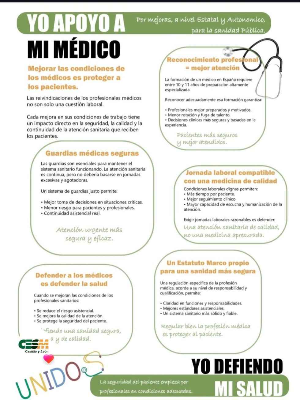 Se pide comprensión y apoyo ciudadano para defender el futuro de la sanidad pública.