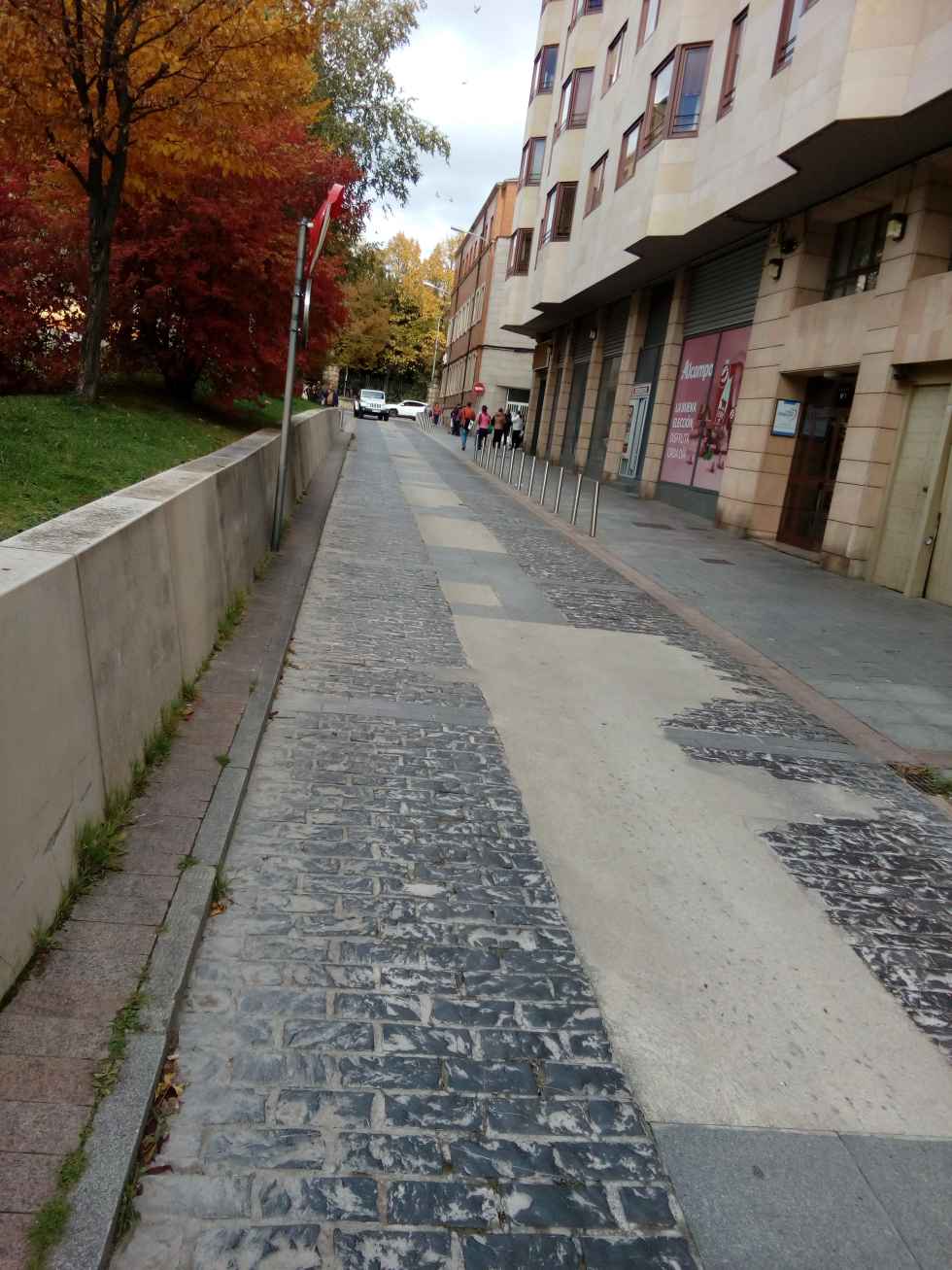 Se suprimen pasos de peatones en las obras de reforma de las travesías, obligando a dar largos rodeos para cruzarlas, o para algo tan simple como arrojar las basuras en los contenedores (un claro ejemplo en los primeros tramos de la avenida de Valladolid). Y ¡ay de aquel que cruce por donde no debe! He presenciado dos caídas por tropezar con los separadores de carril bici y calzada, una de ellas con fractura y hospitalización. Cuánto mejor la solución de Mariano Vicén, con ciclistas y peatones al mismo nivel.