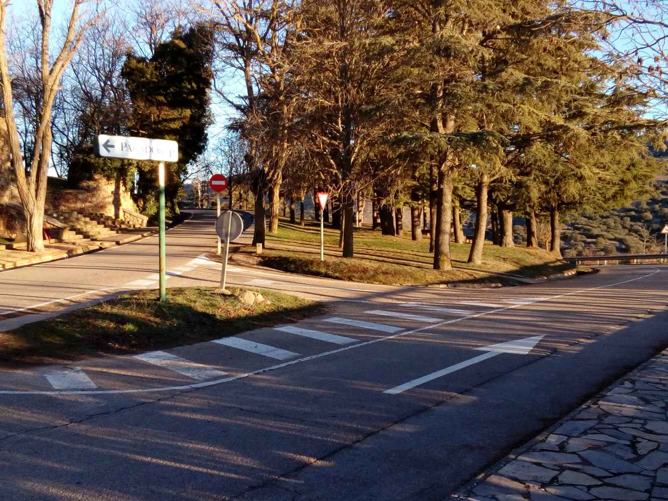 Con la nueva ordenación artística (¿) se han logrado cinco “éxitos”: a)crear tres puntos de posible conflicto -antes inexistentes-, b) despistar a muchos conductores (con el consiguiente riesgo de accidente o/y multa), c) obligar a un inútil recorrido adicional para aparcar en el paseo de Fortún López, o para dirigirse al Duero, o para aparcar los viajeros que acceden al Parador con vehículo y equipaje, d) obligar a un endemoniado giro para acceder al aparcamiento del Parador, y e) dificultar sin necesidad los giros de autocares. ¡Bravo!