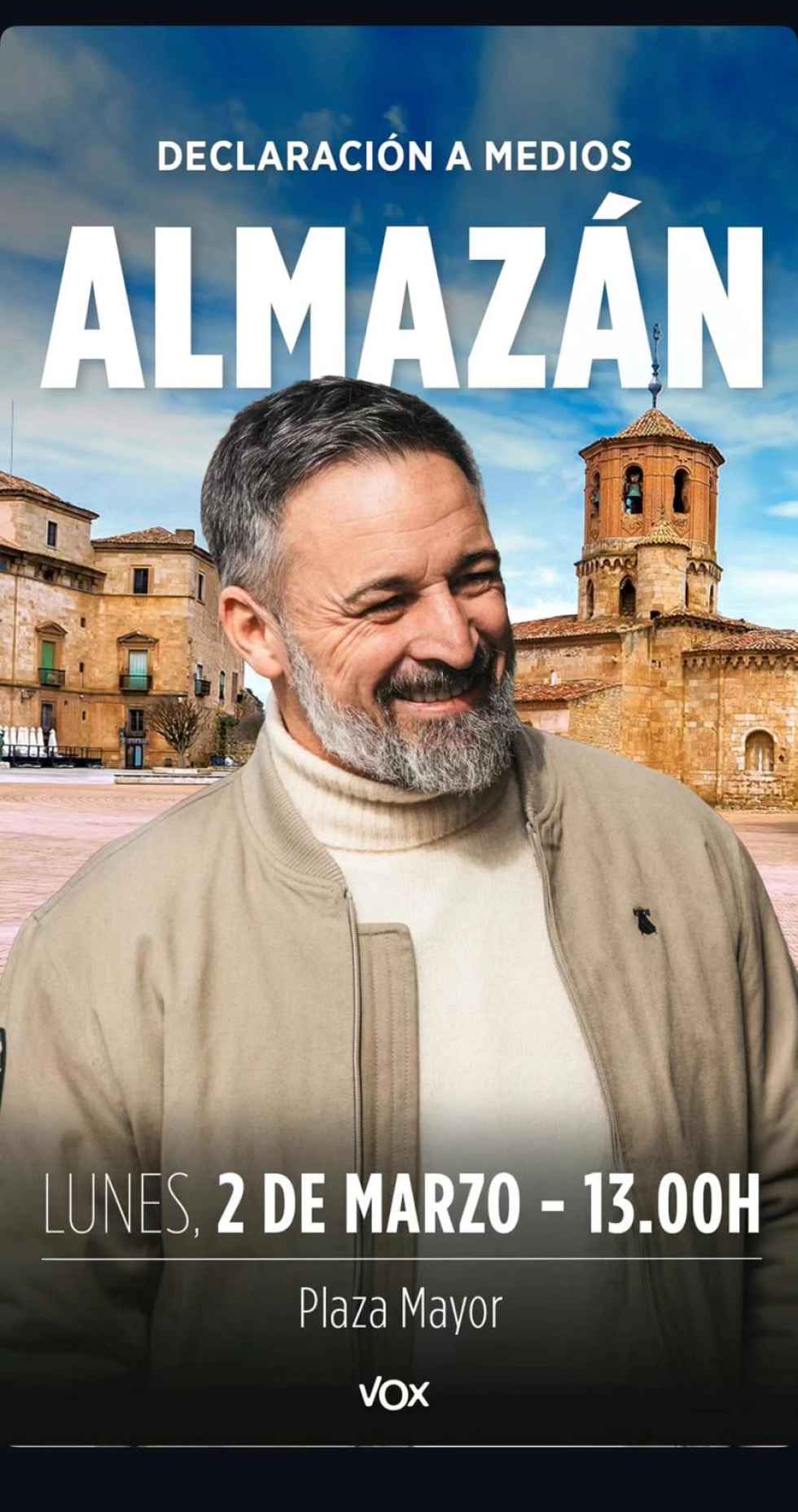 El presidente de Vox, Santiago Abascal, volverá a tierras sorianas para impulsar la candidatura de su partido a las elecciones autonómicas. El próximo 2 de marzo estará en Almazán.