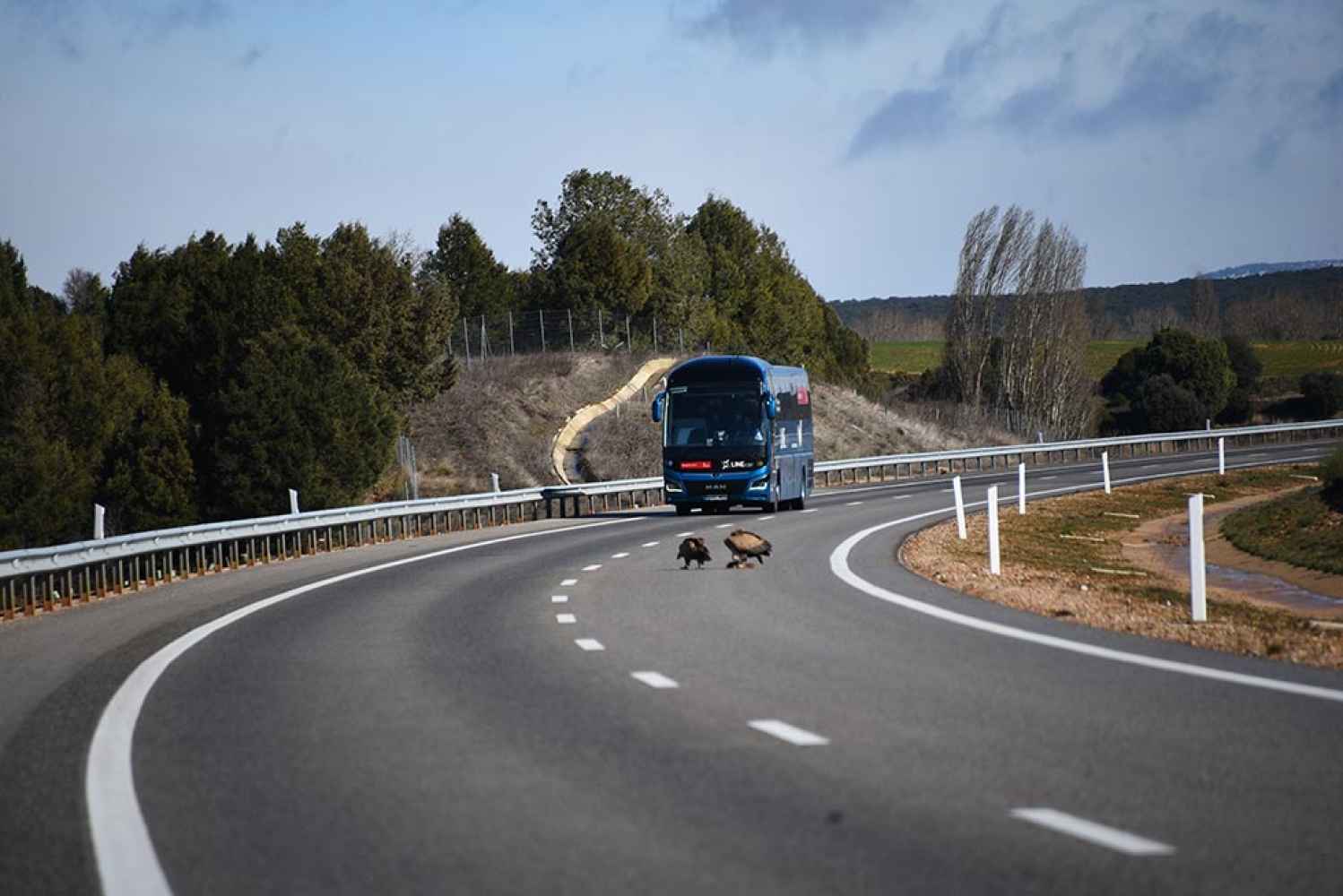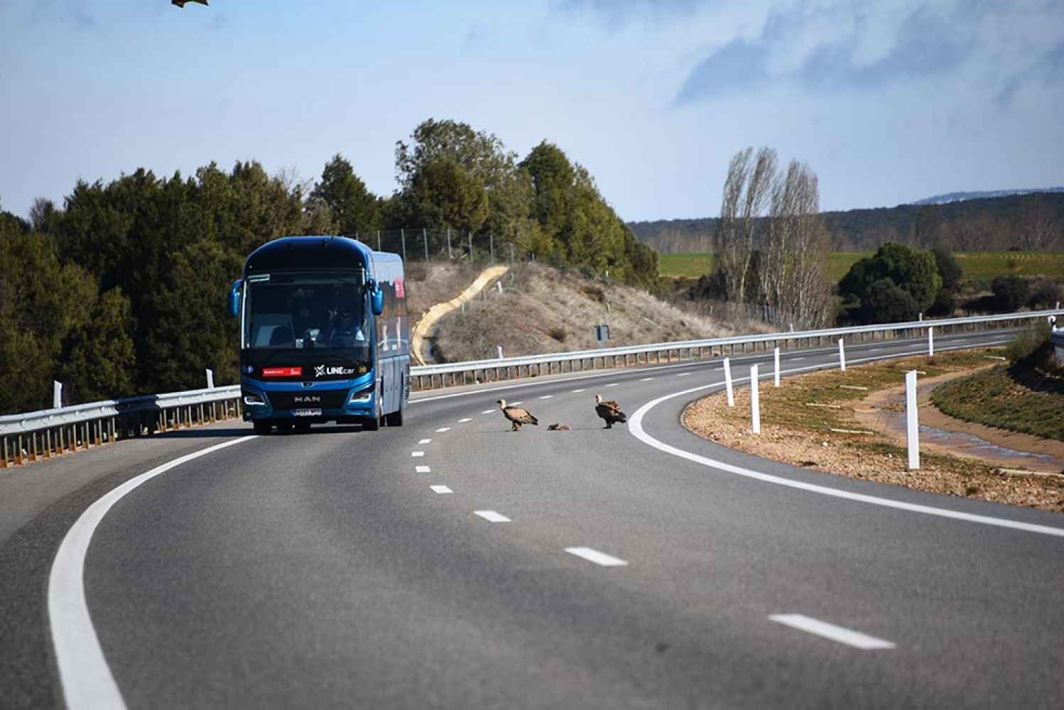 El pasado sábado, en la A-11, entre Torralba del Burgo y Santiuste, dos buitres sorprendieron a los conductores y les obligaron a desacelerar y cruzar con cuidado, al encontrarse en plena calzada comiendo a un animal atropellado.