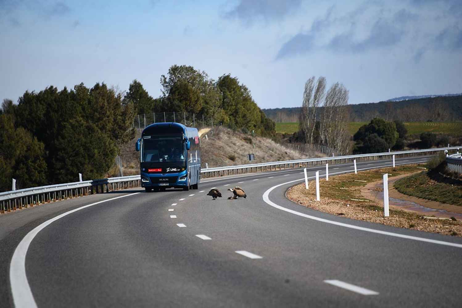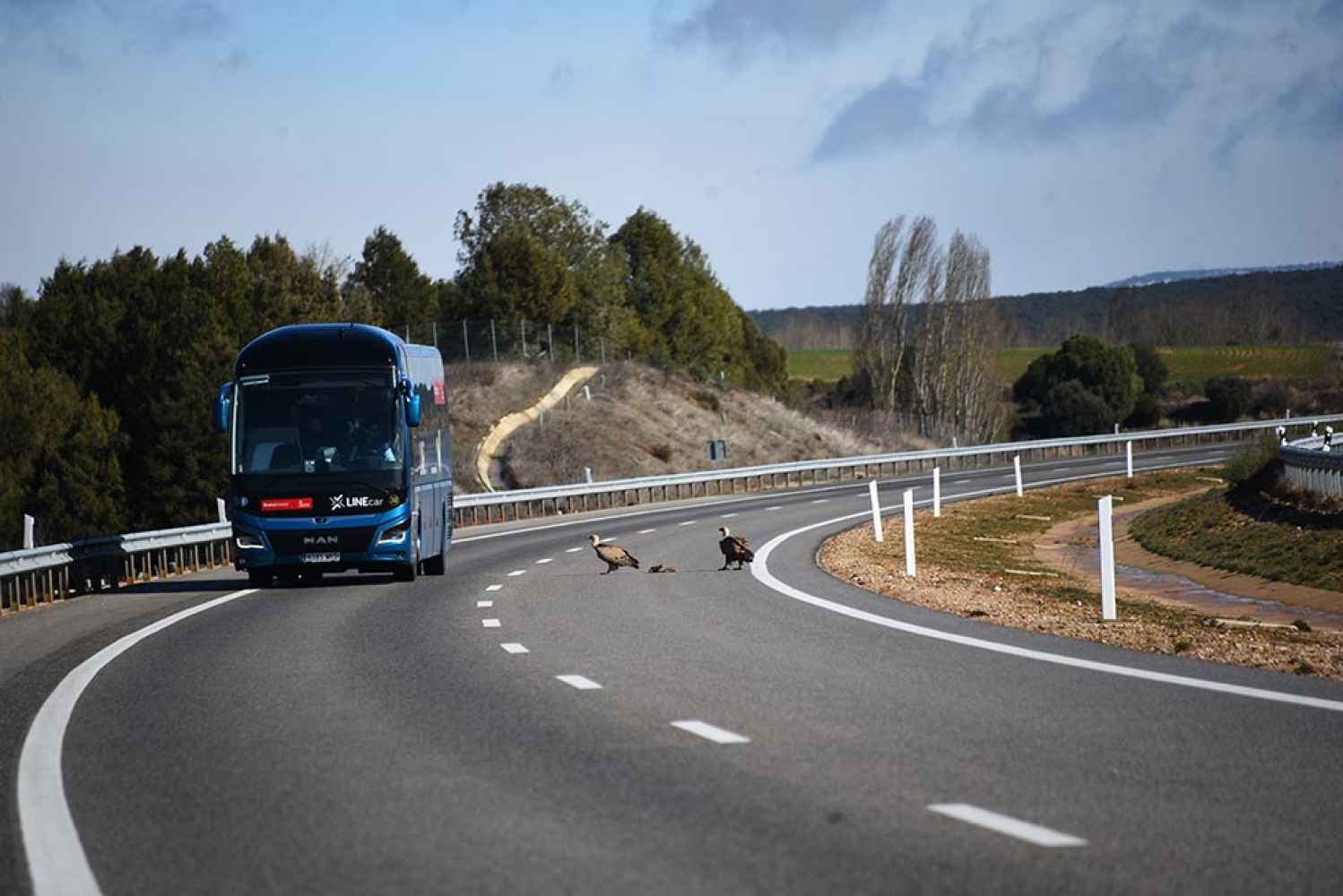 La falta de comida lleva a los buitres a utilizar recursos que hace unos años no solían usar, como los animales atropellados en las carreteras. El penúltimo caso se ha contemplado en la autovía del Duero, a su paso por la provincia de Soria.