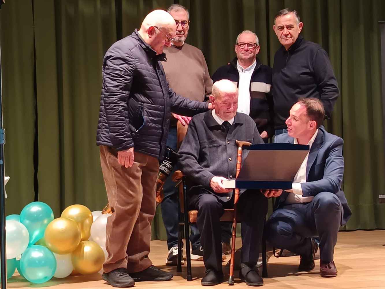 El acto ha comenzado a las 11:00 horas recibiendo las felicitaciones del diputado provincial, Daniel García, que le ha hecho entrega una placa conmemorativa de la efeméride y una copia de su partida de nacimiento.