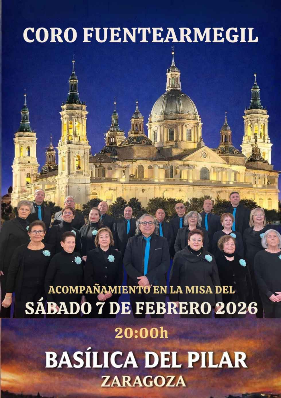 El coro de Fuentearmegil acompañará la misa del próximo 7 de febrero, a las ocho de la tarde, en la Basílica del Pilar, en Zaragoza.