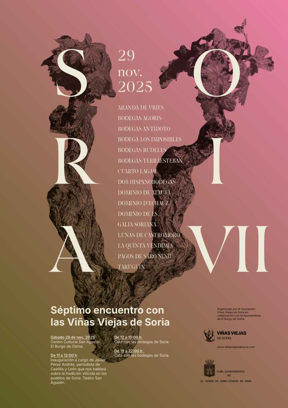 La asociación Viñas Viejas de Soria llegará, por primera vez, a El Burgo de Osma en el marco del séptimo encuentro enológico que se celebrará en el centro cultural San Agustín de la villa episcopal el próximo sábado 29 de noviembre.