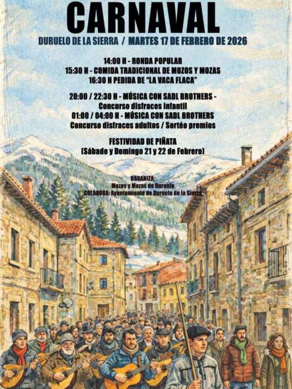 El carnaval regresa a Duruelo de la Sierra este martes con todo lo que lo hace especial: tradición, música, disfraces y muchas ganas de pasarlo bien.