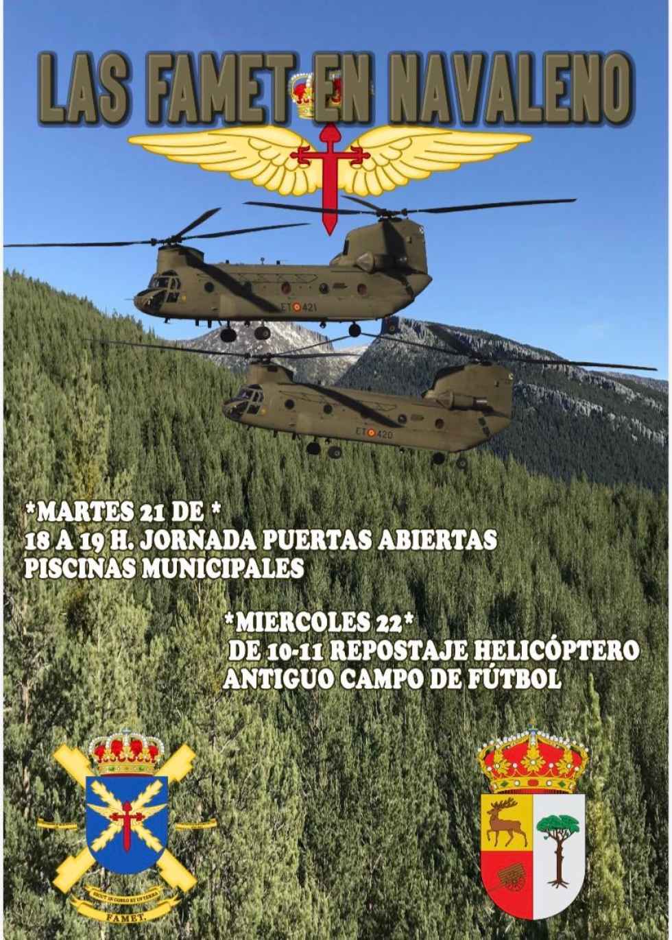 Si quiere ver de cerca a los helicópteros de las FAMET y conocer cómo trabajan sus tripulaciones, sólo hay que acercarse el próximo martes 21 de abril a las piscinas municipales de Navaleno, donde se celebrará una jornada de puertas abiertas para vivir una experiencia única, disfrutando, aprendiendo y viviendo la aviación del Ejercito de Tierra en primera persona, para todos los públicos.