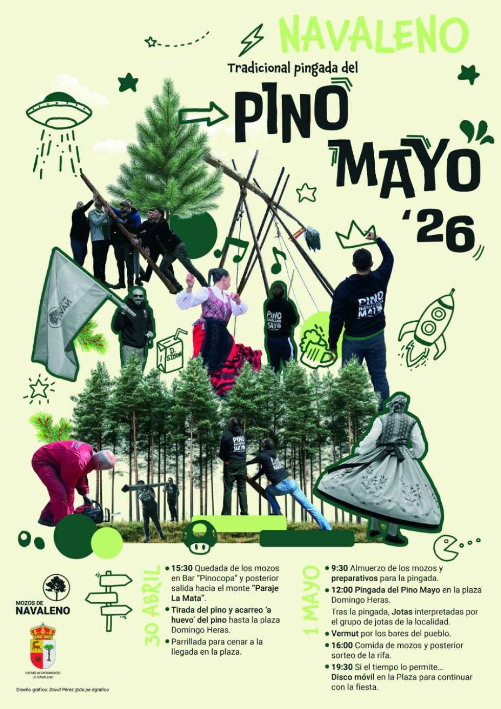Los actos comenzarán el jueves 30 de abril con la quedada de los mozos, la salida al monte, la tirada del pino y su acarreo hasta la plaza Domingo Heras.