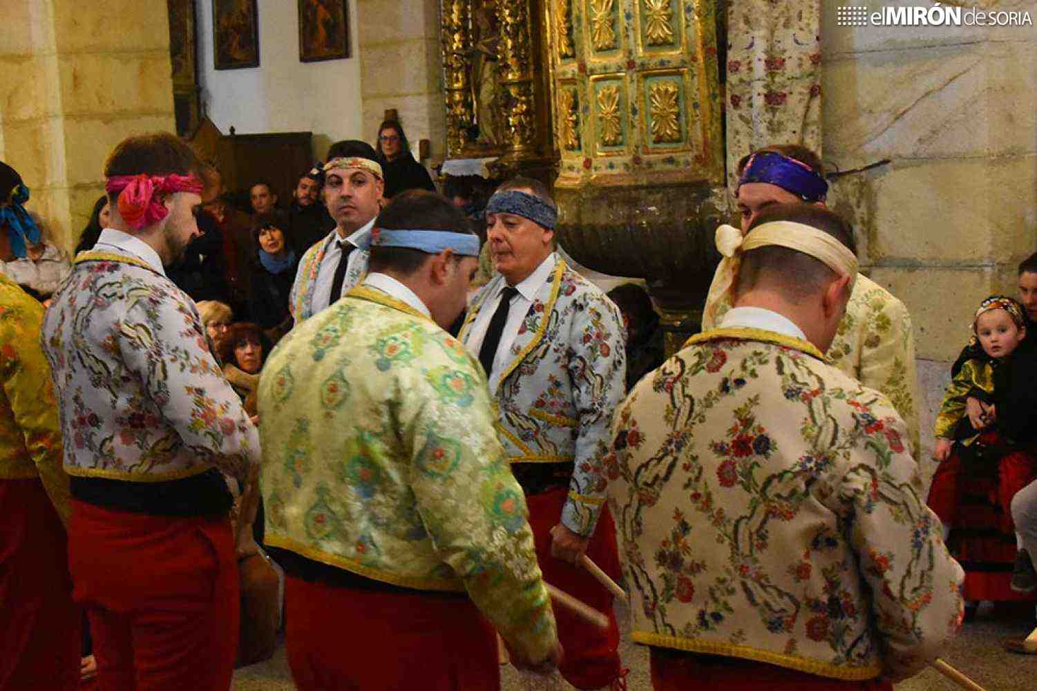 La iglesia parroquial de Casarejos, en la festividad de la Virgen de la Paz, se ha vuelto a llenar de vecinos e hijos de este pueblo soriano de Pinares para presenciar las danzas del paloteo.