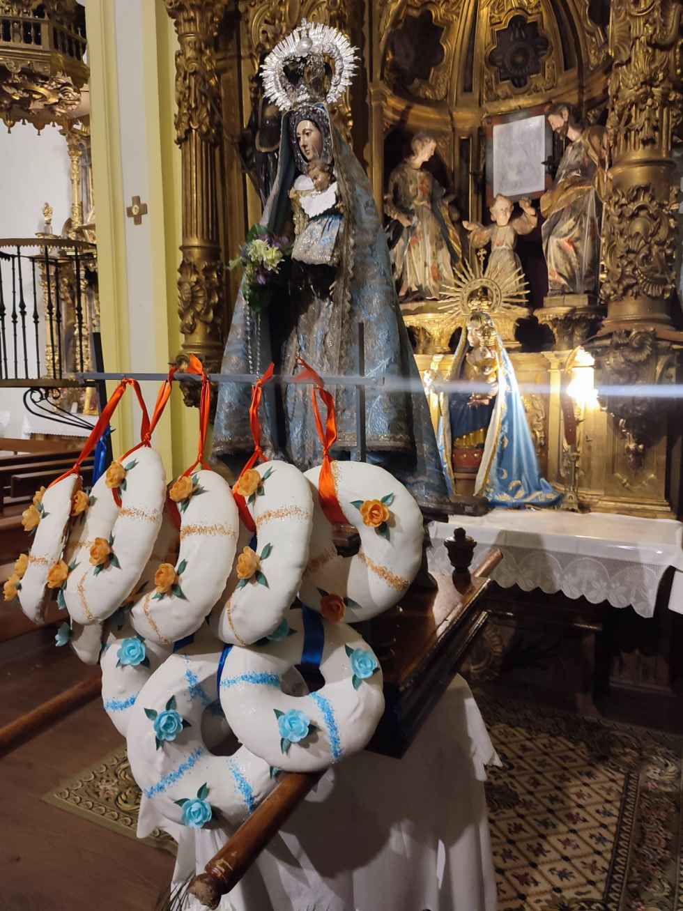 Estas insignias pasan de los capitanes viejos a los nuevos en la víspera de la Candería, en una ofrenda de los “rollos” a la Virgen y la bendición de las velas.