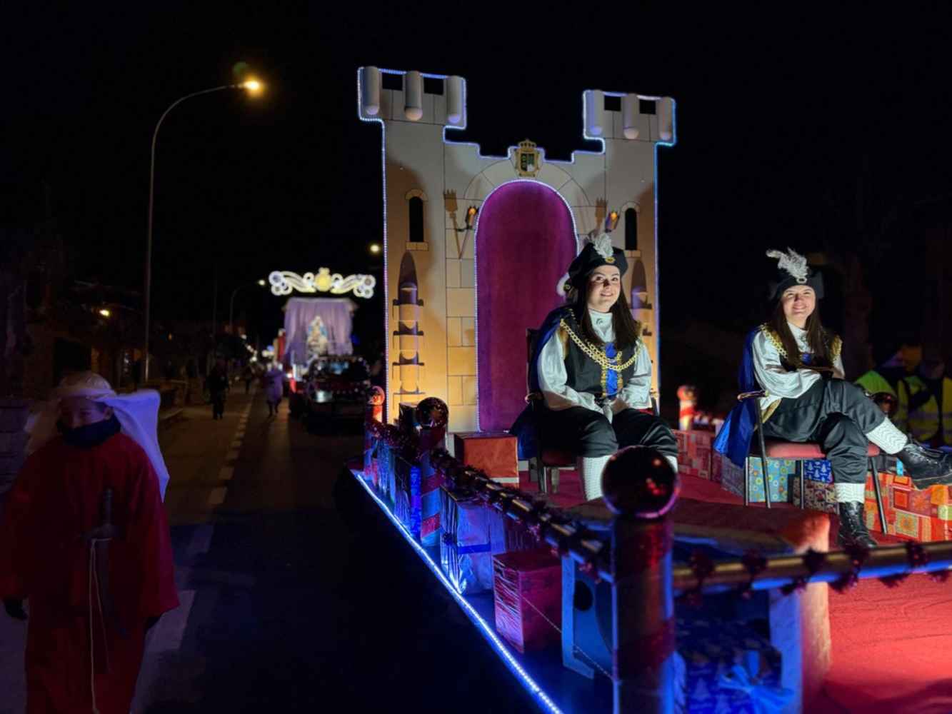 La espectacular cabalgata ha estado formada por nueve carrozas y un centenar de personas entre pajes ,colaboradores y fuegos artificiales.