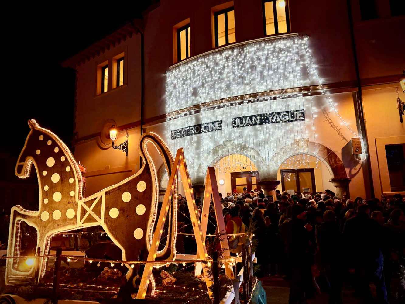 La cabalgata ha realizado su tradicional recorrido por las calles de San Leonardo, para despues recibir a todos niños y mayores en el teatro.