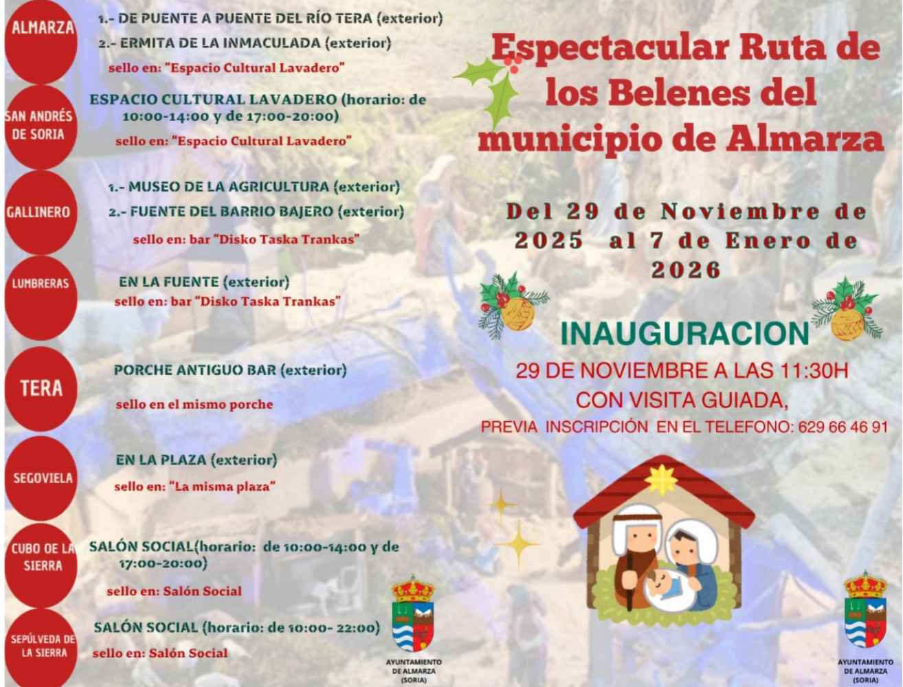 Será a las 11:30 horas de este sábado, en el antiguo lavadero de San Andrés de Soria cuando se inaugure una nueva edición de la ruta de los Belenes, que conducirá hasta el 7 de enero de 2026 a los visitantes por los pueblos que componen el municipio de Almarza.
