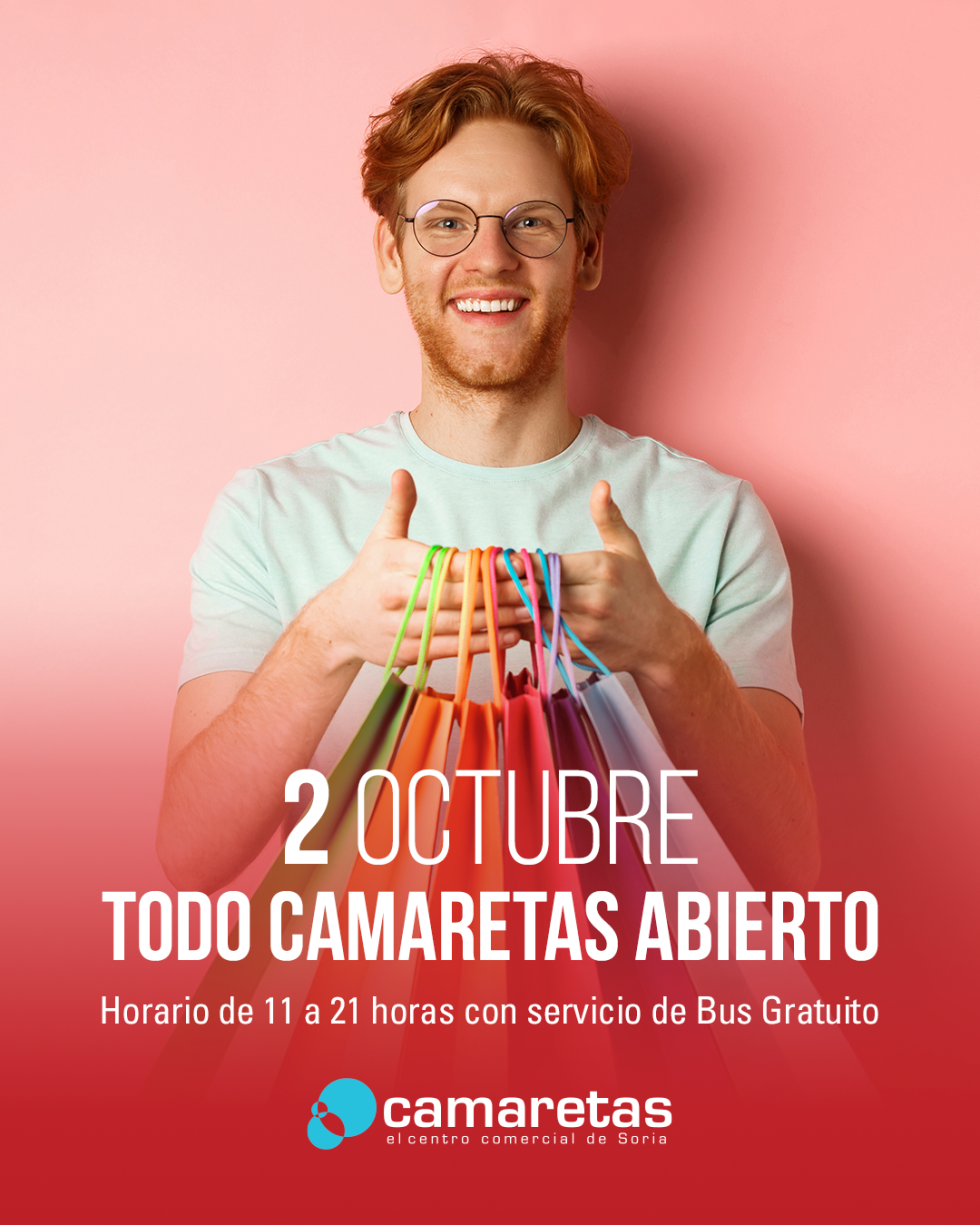 Este jueves,  2 de octubre, todoel centro comercial Camaretas estará abierto de 11:00 horas a 21:00 horas permitiendo así que los sorianos realicen sus compras y preparen su armario y hogar para este otoño con moda, decoración, tecnología…