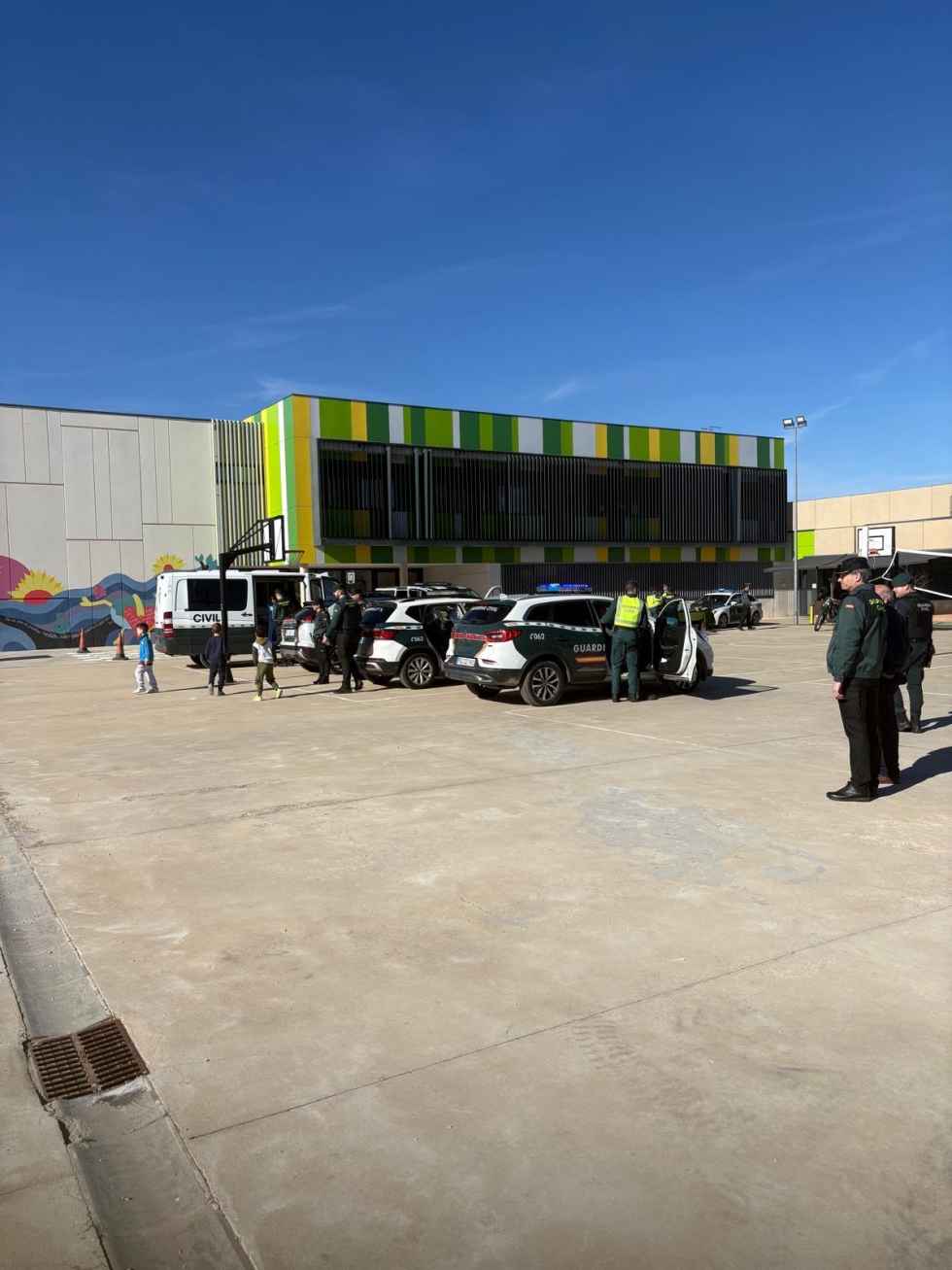 Serrano se ha acercado hoy las instalaciones del CEIP de Golmayo para visitar la demostración de la Guardia Civil en el colegio de Camaretas y ha destacado el gran papel educativo que siempre muestran y su gran diligencia a la hora de acudir a los centros escolares.
