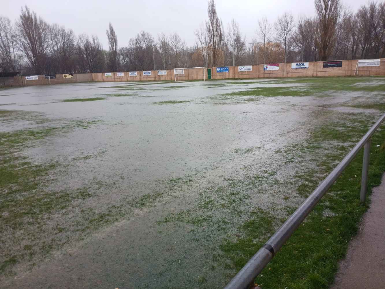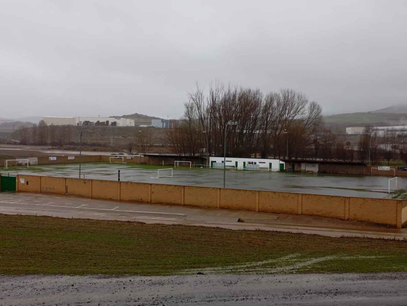 El campo de fútbol de “La Arquilla”, situado junto a la dehesa de Ágreda, se ha visto anegado de agua.