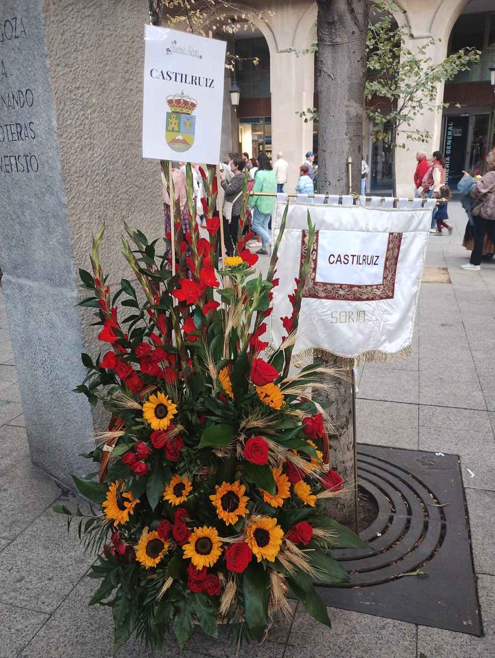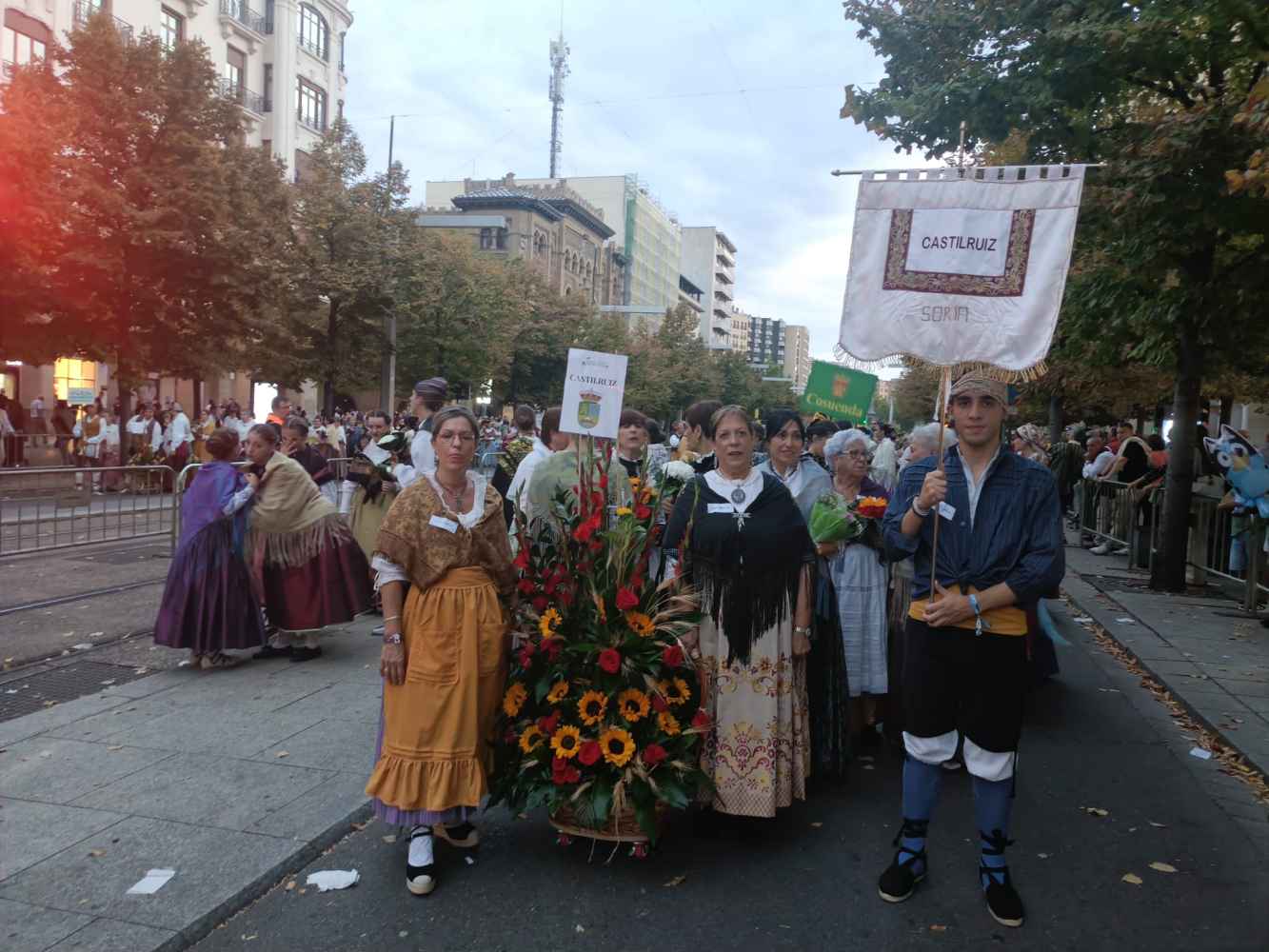 La localidad soriana de Castilruiz ha participado por primera vez en forma colectiva a la tradicional ofrenda en el día grande de las fiestas del Pilar.