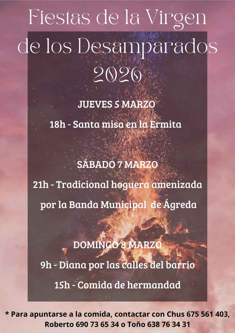 Celebración de la Fiesta del Barrio, con su tradicional hoguera amenizada por la Banda Municipal de Música, su Diana y su animada Comida de Hermandad.
