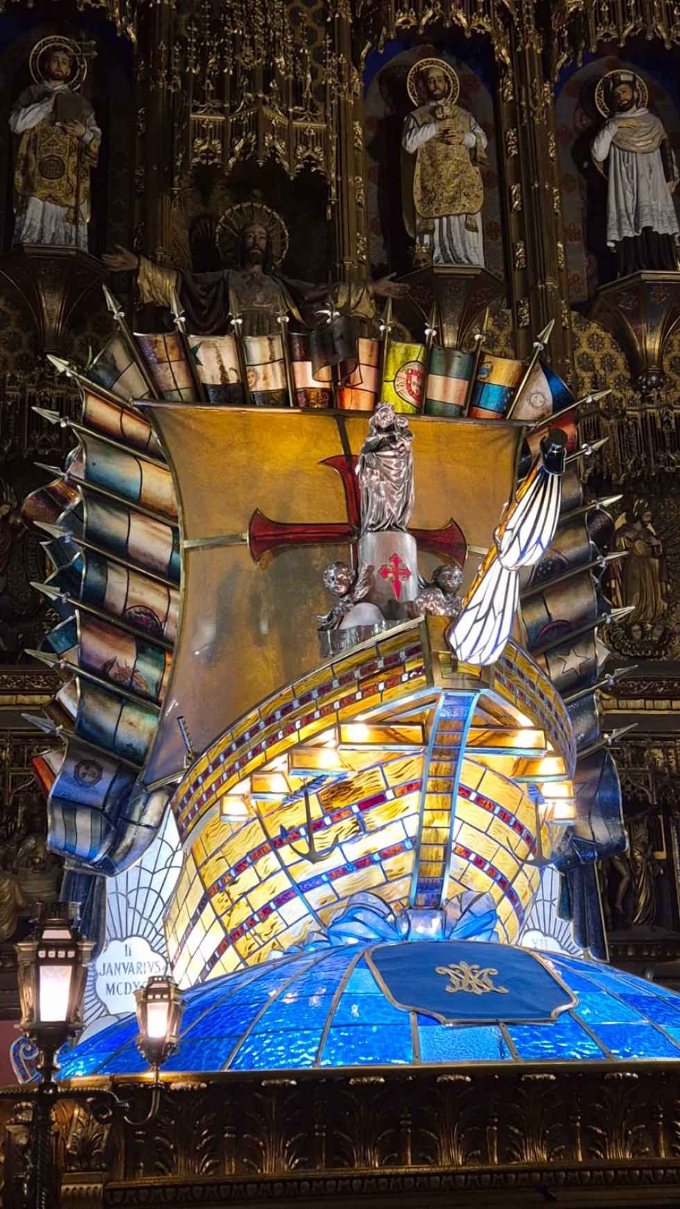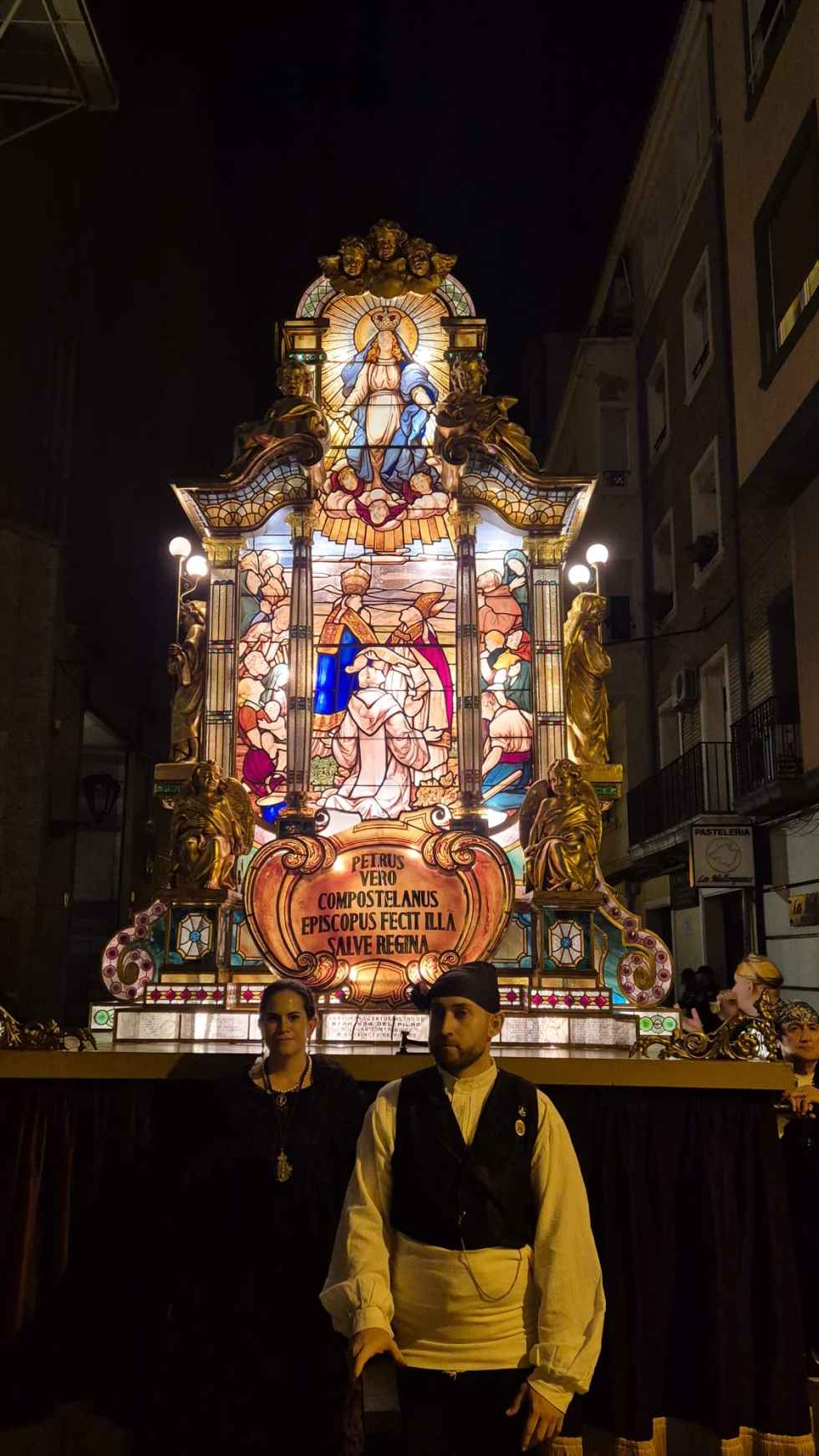También unas espectaculares carrozas de cristal emplomado que, alternadas entre los faroles de mano, dan un especial esplendor a la procesión.