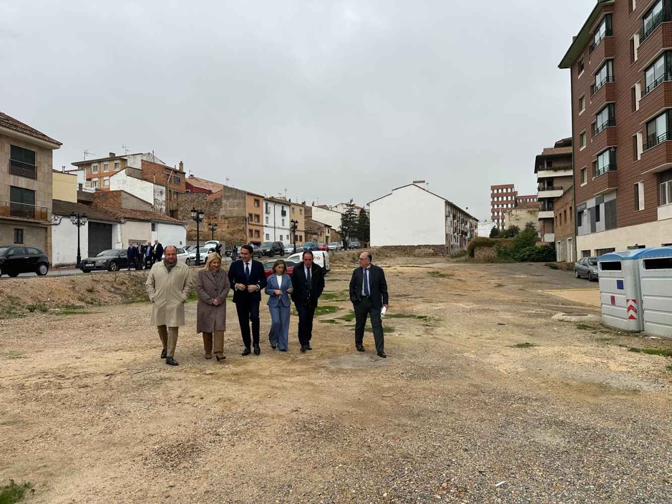 El consejero de Medio Ambiente, Vivienda y Ordenación del Territorio, Juan Carlos Suárez-Quiñones, visitó la parcela donde va a construirse este edificio de viviendas en el pasado mes de noviembre, con motivo de la firma, con la alcaldesa de Ólvega, Elia Jiménez, del protocolo para el desarrollo de un Plan Regional de Ámbito Territorial (PRAT) para la construcción de 237 viviendas en la zona de 'Los Prados' de la localidad soriana.