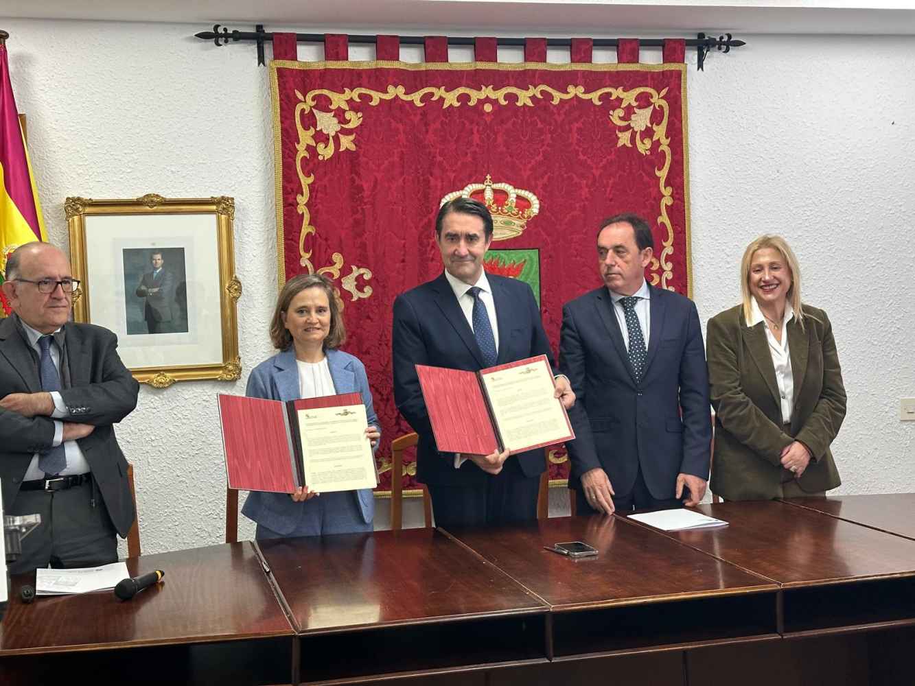 El consejero de Medio Ambiente, Vivienda y Ordenación del Territorio, Juan Carlos Suárez-Quiñones, ha firmado hoy con la alcaldesa de Ólvega, Elia Jiménez, el protocolo para el desarrollo de un Plan Regional de Ámbito Territorial (PRAT) para la construcción de 237 viviendas en la zona de 'Los Prados' de la localidad soriana.