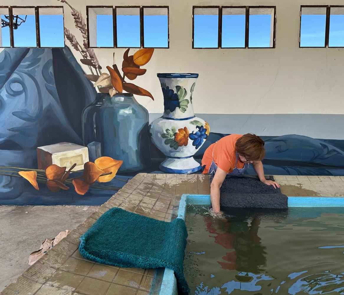 “Es un lugar emblemático, donde la gente todavía viene a lavar alfombras y otras cosas que no se pueden limpiar en casa. Es un espacio de encuentro, de socialización, y gracias a este proyecto he podido reconectar con personas del pueblo y tomar conciencia de cómo se vive y se usa este lugar”, ha resaltado la artista olvegueña en su perfil de redes sociales.