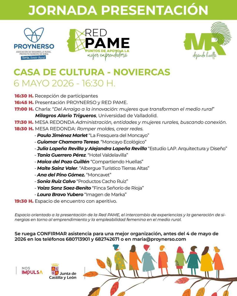 Proynerso presentará el próximo 5 de mayo en la Casa de Cultura de Noviercas su Red PAME, puesta en marchar para apoyar el emprendimiento femenino. Lo hará con el ejemplo de varias emprendedoras de la comarca.