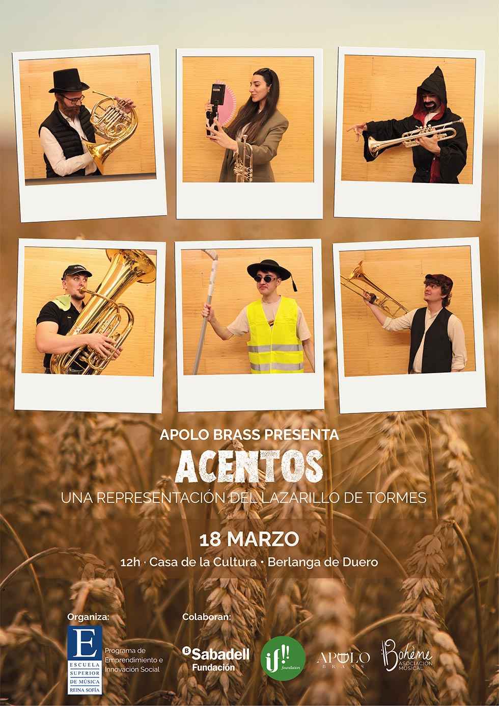 El ensemble de viento metal Apolo Brass presenta “Acentos”, un proyecto escénico y musical que reinterpreta desde una mirada contemporánea el clásico de la literatura española El Lazarillo de Tormes.