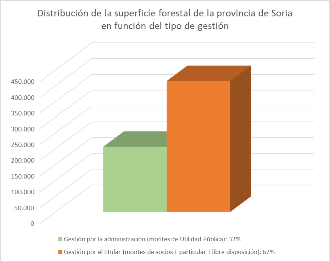 Con más de 600.000 hectáreas calificadas como terreno forestal, un 68 por ciento pertenece a particulares, un 27 por ciento a entidades locales y un 5 por ciento al Estado y a las comunidades autónomas.