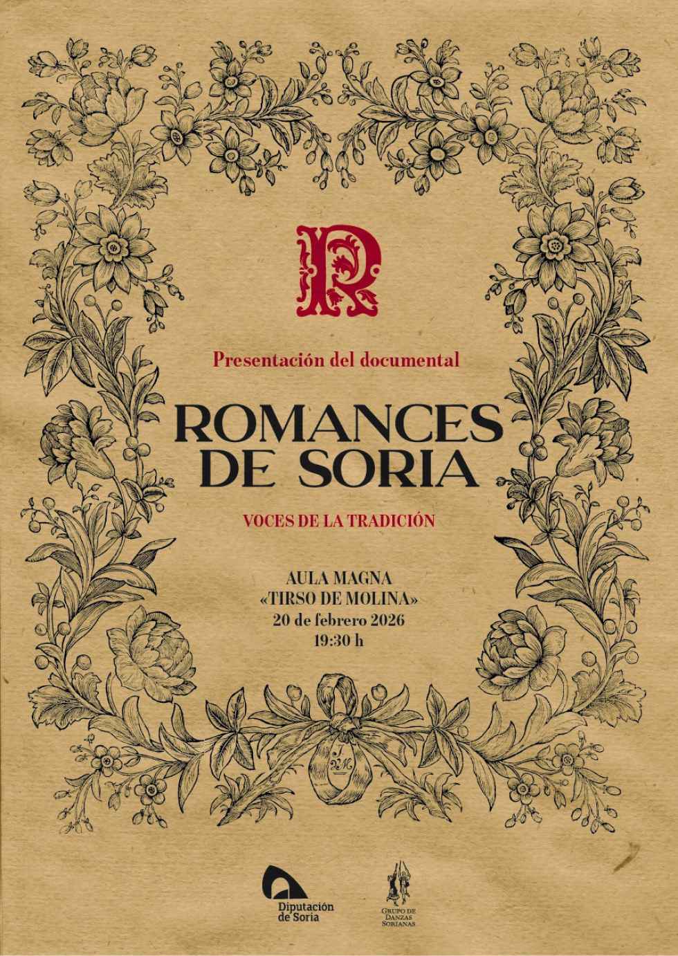 El Aula Magna Tirso de Molina acogerá este próximo viernres, a las 19:30 horas, la presentación oficial del documental 'Romances de Soria: voces de la tradición', una producción impulsada por la Diputación Provincial de Soria junto al Grupo de Danzas Sorianas.