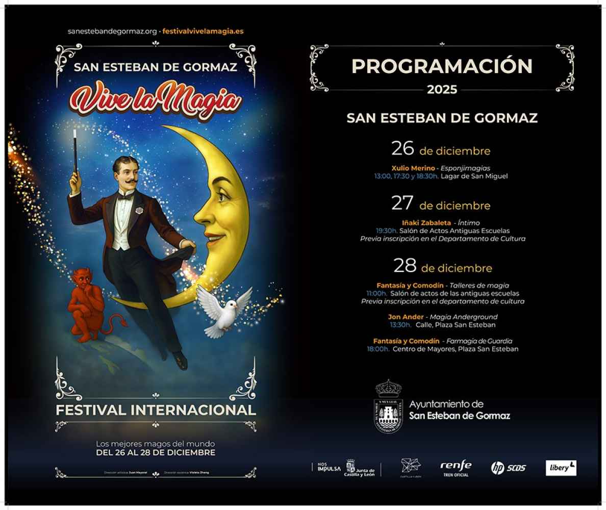 El Festival Internacional Vive la Magia regresa a San Esteban de Gormaz del 26 al 28 de diciembre, con una programación cultural navideña formada por actuaciones de ilusionismo de artistas de primer nivel internacional.